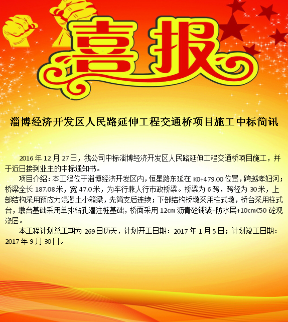 公司中標(biāo)淄博經(jīng)濟(jì)開發(fā)區(qū)人民路延伸工程交通橋項(xiàng)目施工