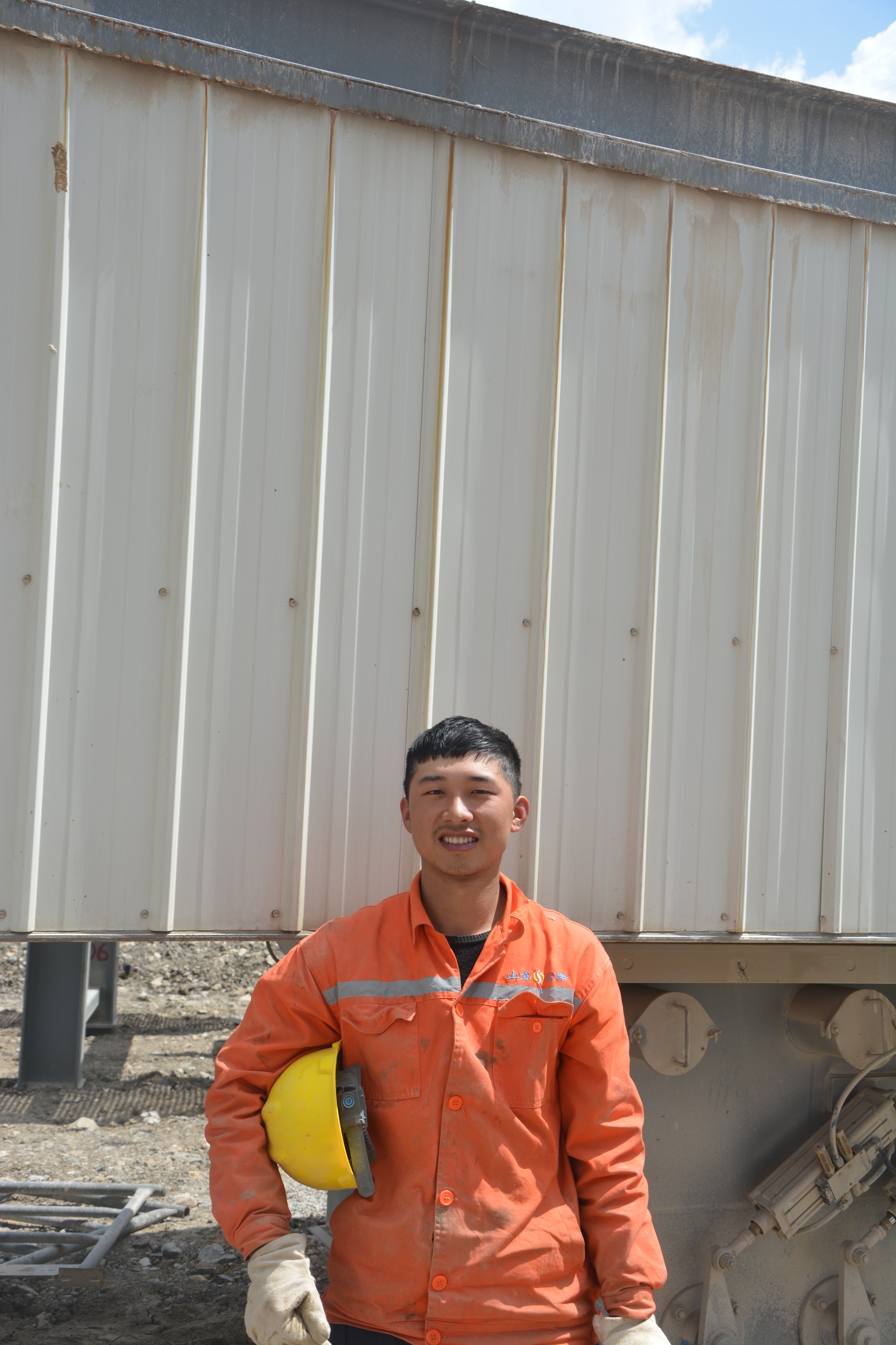 上午11:20瀝青拌合站操作工龍濤正在搭設(shè)拌合站樓梯