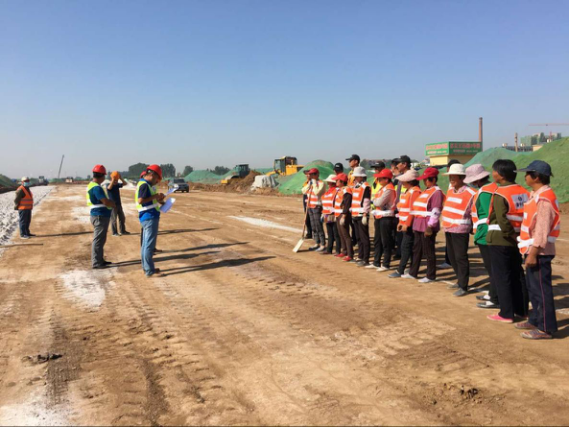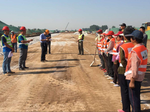 首先由項目總工葛啟輝從施工規(guī)范、擬投入機械配置、施工計劃、施工工藝、施工質(zhì)量控制等技術(shù)方面對施工隊伍進行交底,然后由項目副經(jīng)理王方凱從高壓線下作業(yè)、機械安全操作、臨時用電、防火、防暑、文明環(huán)保施工、特種作業(yè)持證上崗、現(xiàn)場施工人員安全教育、安全生產(chǎn)管理等安全方面做出具體要求。