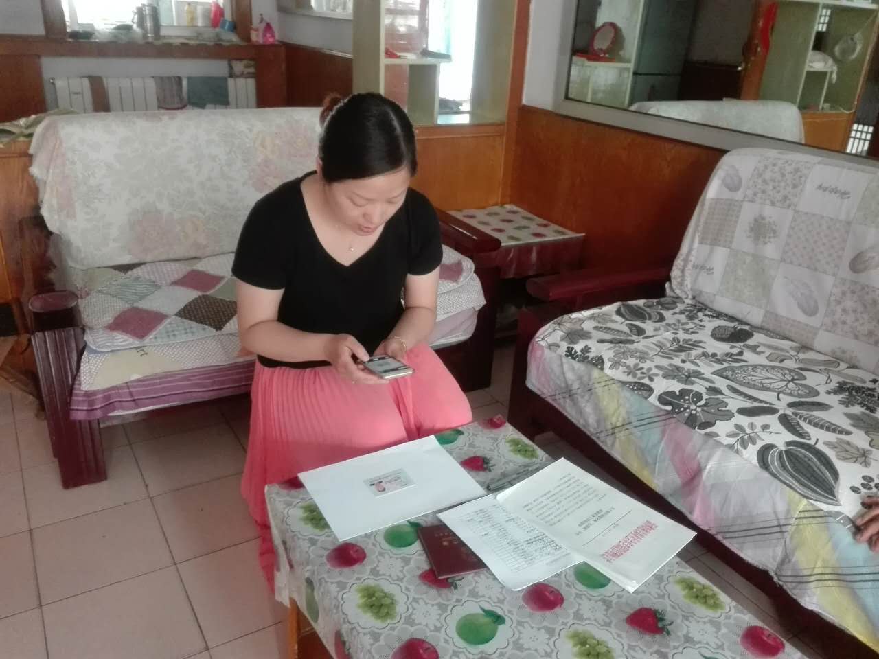 人力資源部人事專員曹娟為行走不便的老人上門進行數(shù)據(jù)采集工作