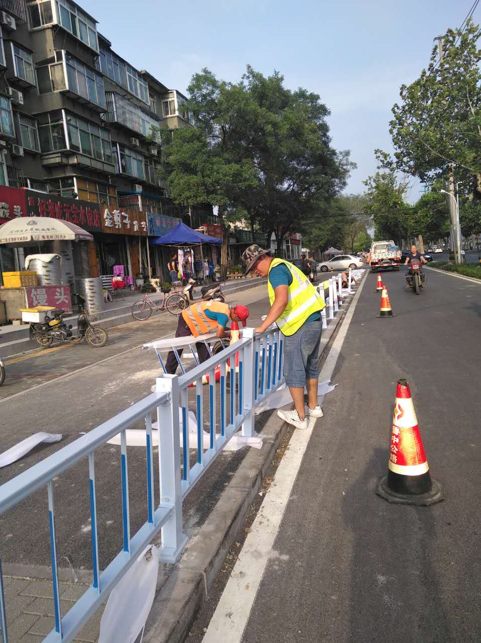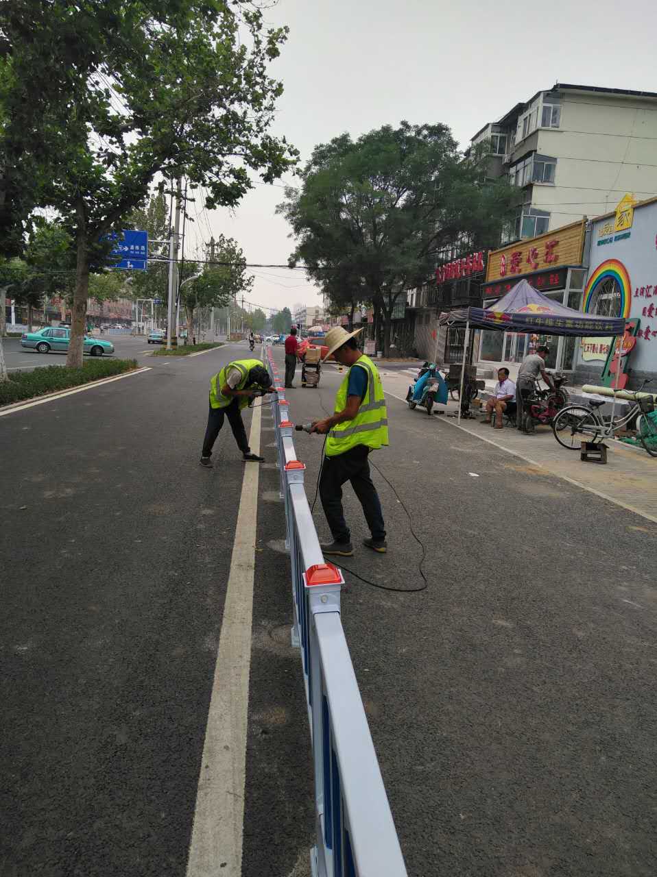 路面工程分公司承接的人民路公交隔離護(hù)欄目前正在進(jìn)行安裝工作,人民路公交隔離護(hù)欄共計長度5030米,現(xiàn)已完成安裝3600米,項目部積極投入人員和機(jī)械力量,現(xiàn)場人員加班加點,保證以最快的速度完成。根據(jù)項目部計劃7月15日完成人民路公交護(hù)欄的安裝工作。新型公交護(hù)欄采用白色底漆,豎桿加以藍(lán)色反光噴漆,立柱安裝太陽能柱帽,新型公交護(hù)欄的安裝已成為人民路上一道亮麗的風(fēng)景線,實現(xiàn)了公交車與非機(jī)動車的隔離作用,既保障了行車安全又改善了人民路交通擁擠的狀況。