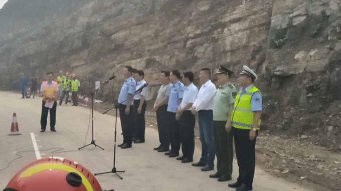 模擬發(fā)生險情后,救援隊伍趕赴事故現(xiàn)場