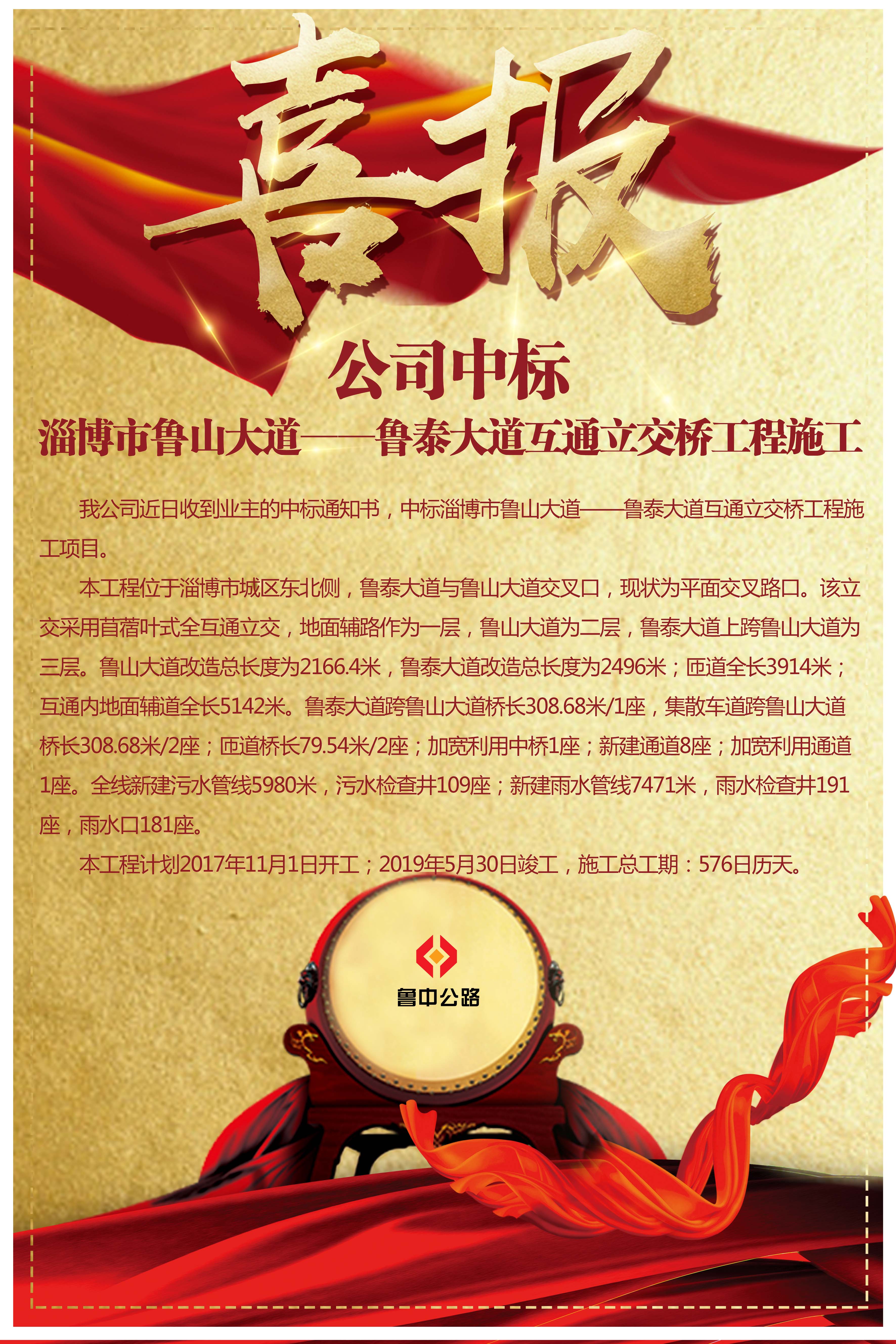 公司中標淄博市魯山大道―魯泰大道互通立交橋工程施工
