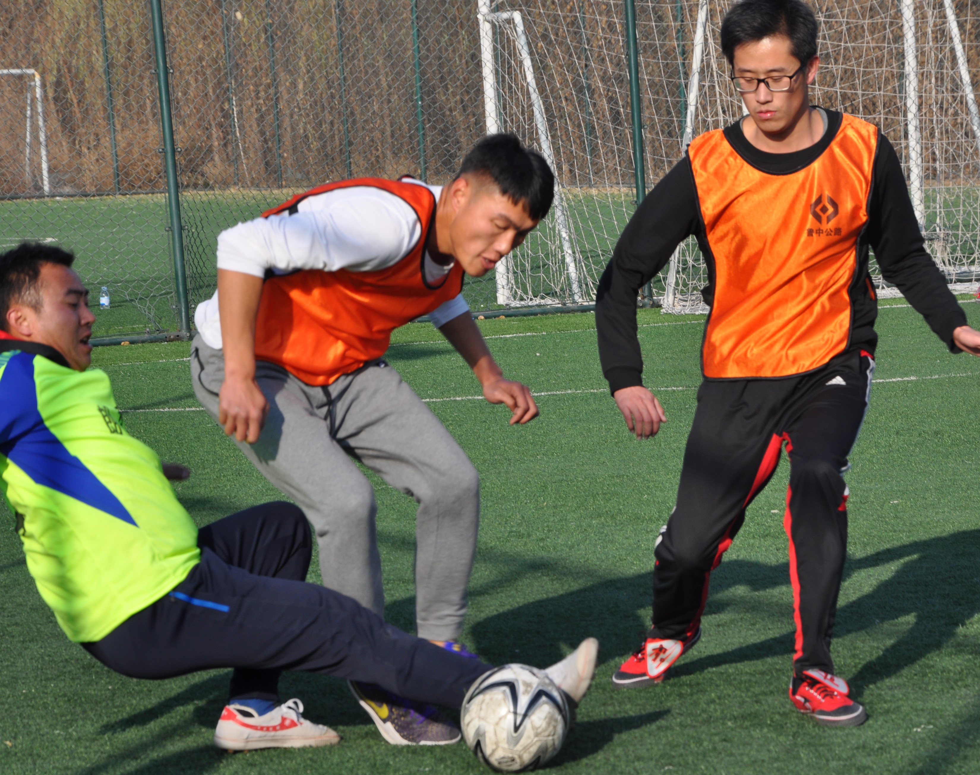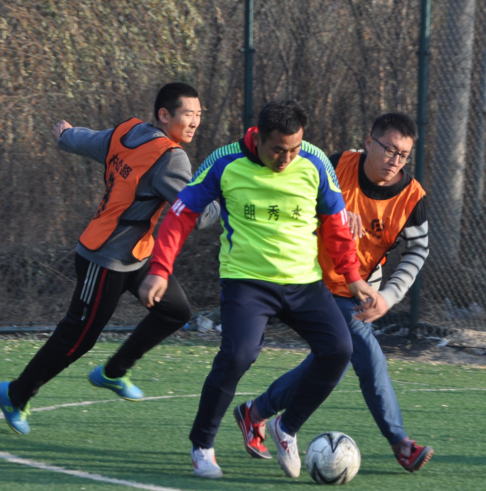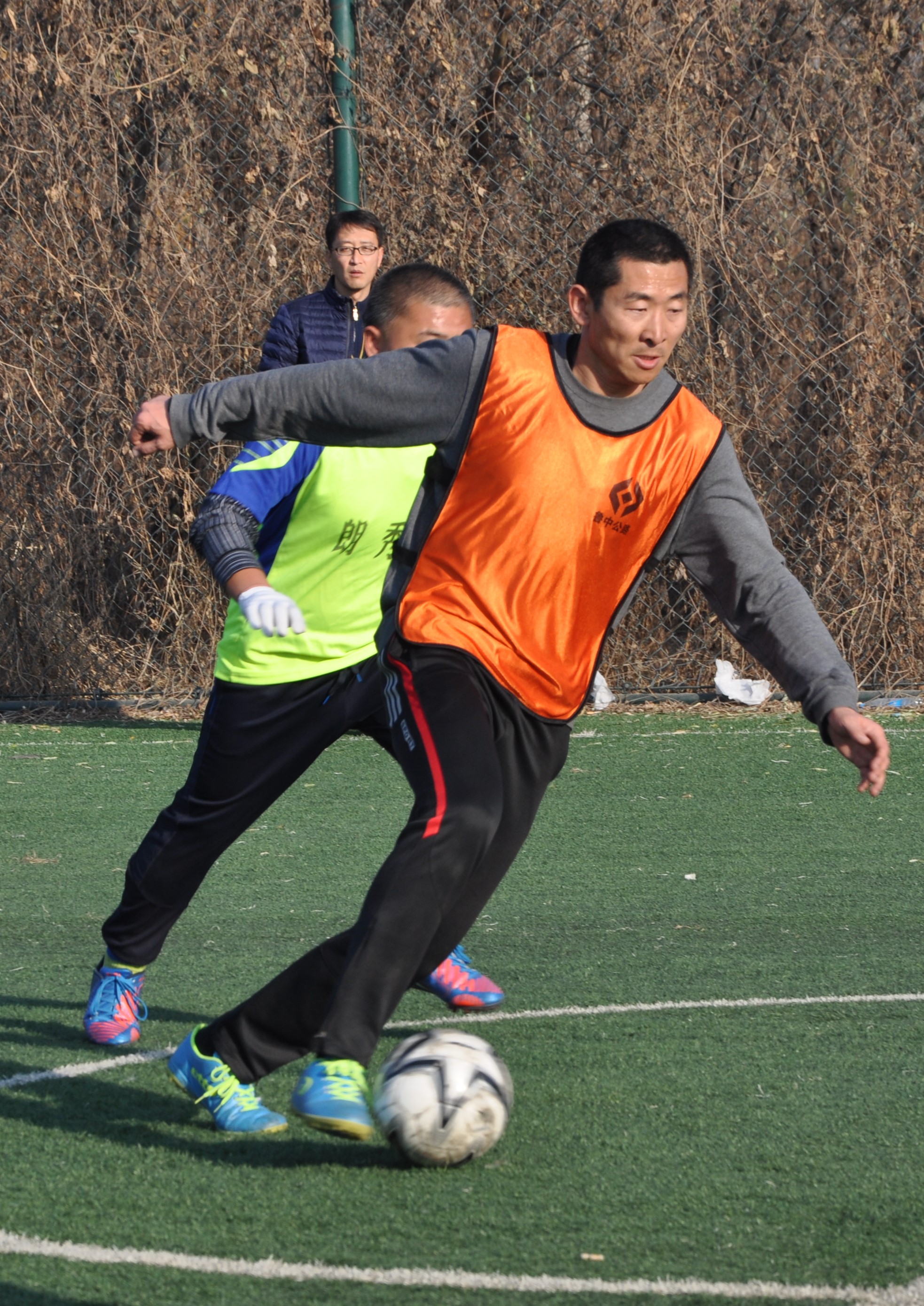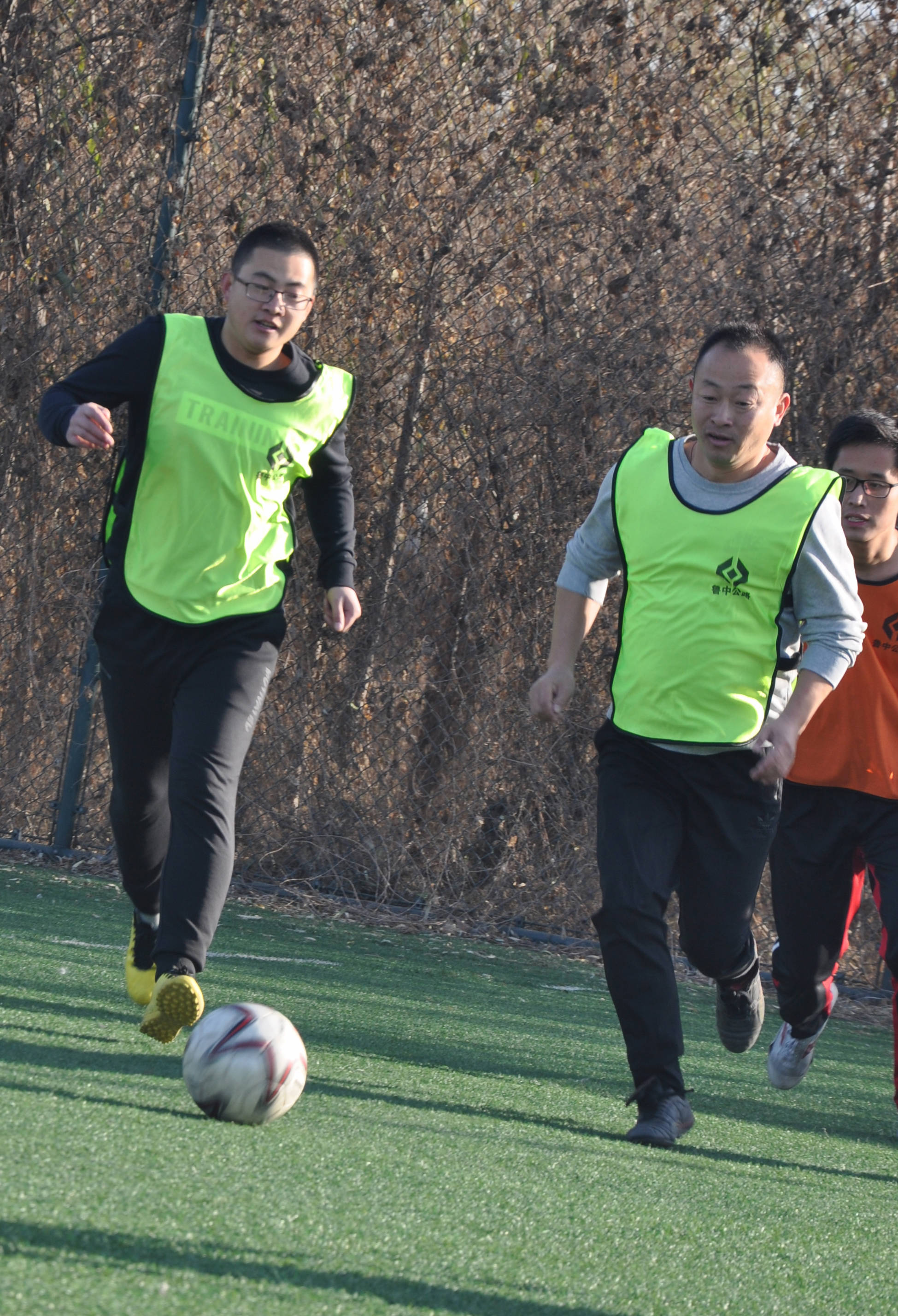賽場上,隊員們激烈拼搶,盡情發(fā)揮球技,搶斷、過人、射門、撲救……精彩場面一個接一個,大家你追我趕,奮力馳騁。冬日的暖陽灑滿整個綠茵場,賽場上的人們熱情激昂,場下的觀眾也是心情激蕩。賽場周圍被染了金黃的楊柳樹,也仿佛重新煥發(fā)了生機,隨著風的律動,左右搖擺,歡呼雀躍。