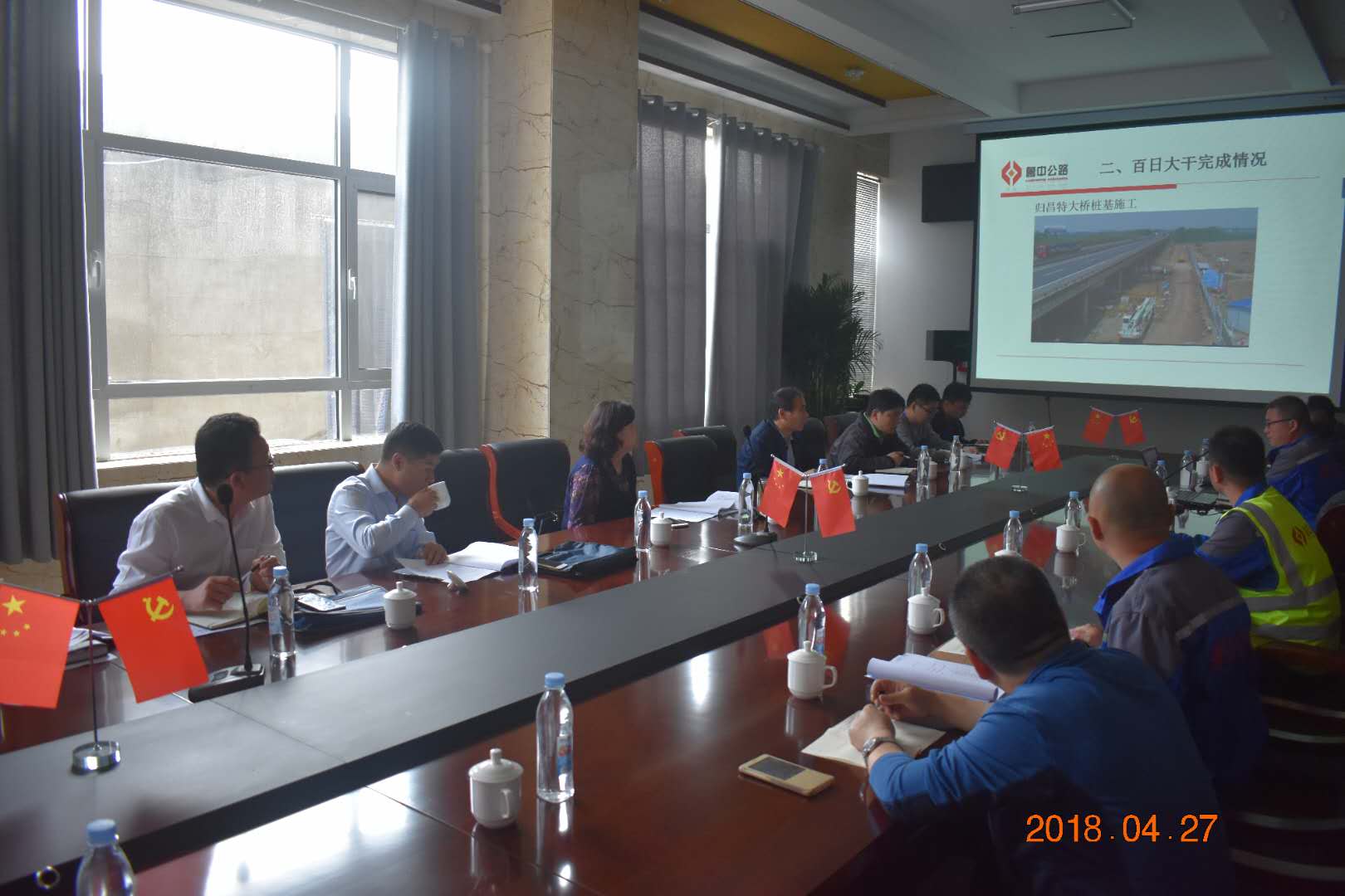 2018年4月27日,由項目辦總監(jiān)辦組織的檢查組來我G2京滬項目部進行4月份月底檢查。上午9點整,我部在項目部一樓會議室召開匯報會議,來自項目辦、總監(jiān)辦、駐地辦的檢查組人員以及G2京滬項目部項目經(jīng)理、項目總工、各科室負責人以及現(xiàn)場施工技術人員等共計40余人參加會議。