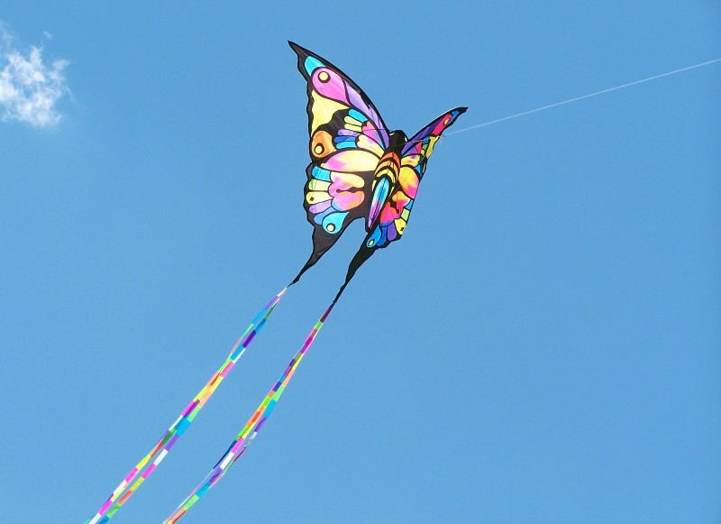 現(xiàn)在彩鳶多是商品貨,少見(jiàn)自己動(dòng)手扎制的,憑心而論,現(xiàn)在的彩鳶有比小時(shí)候的風(fēng)箏大了很多,精致了很多,材料也發(fā)生了巨大的變化?,F(xiàn)在正是春風(fēng)吹遍大地,清明又是踏青之時(shí),登高踏青嬉風(fēng)放鳶,看彩鳶翻飛接天連地,飛上云端帶上美好的愿望,舒展著心情。
