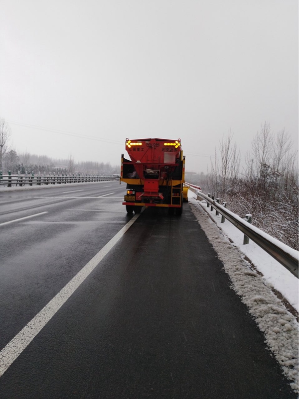 本月初,我部人員在接到養(yǎng)護(hù)中心除雪防滑的通知后,第一時(shí)間準(zhǔn)備就緒,除雪車順利上路撒布融雪劑。作業(yè)期間三輛除雪車從各個(gè)路段同時(shí)噴灑,確保除雪工作不間斷進(jìn)行。并每輛除雪車后安排一輛應(yīng)急保障車輛,保障施工安全和施工質(zhì)量。除正常撒布融雪劑外,我部還安排除雪車將道路內(nèi)側(cè)車道、橋梁、背陰路段積雪進(jìn)行鏟除。歷時(shí)施工兩日,除雪應(yīng)急工作已順利完成,道路積雪融化,車輛正常行駛。