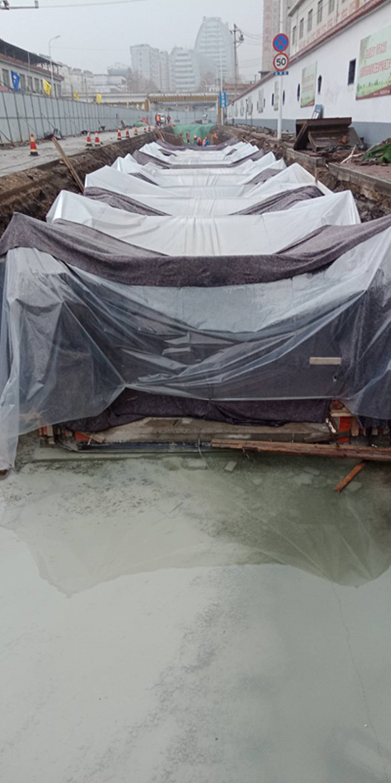 在合理的搶工期、抓進度、確保施工質量的同時,瓏山路工程對現(xiàn)場安全管理更是絲毫不敢松懈。在做好冬季“五防”安全措施等規(guī)定動作的基礎上,針對現(xiàn)場作業(yè)環(huán)境惡劣的情況,安全工作處處都是重點。保溫加熱設施附近放置消防設置,現(xiàn)場物料規(guī)范放置,每天早晨施工前都會安排專職安全員進行安全隱患排查,施工隊長每日班前會進行安全狀況交底,力保冬季施工安全有序進行。