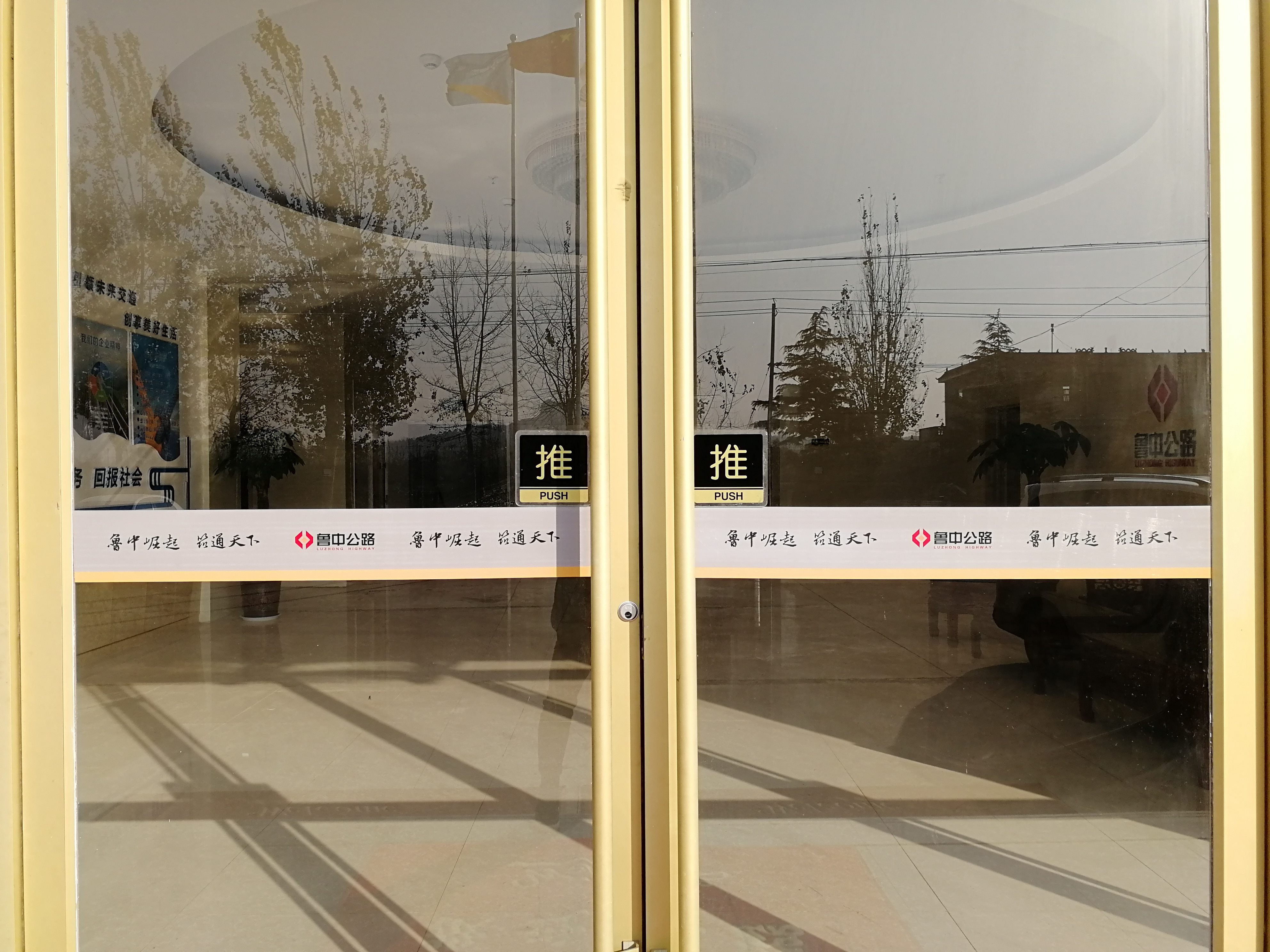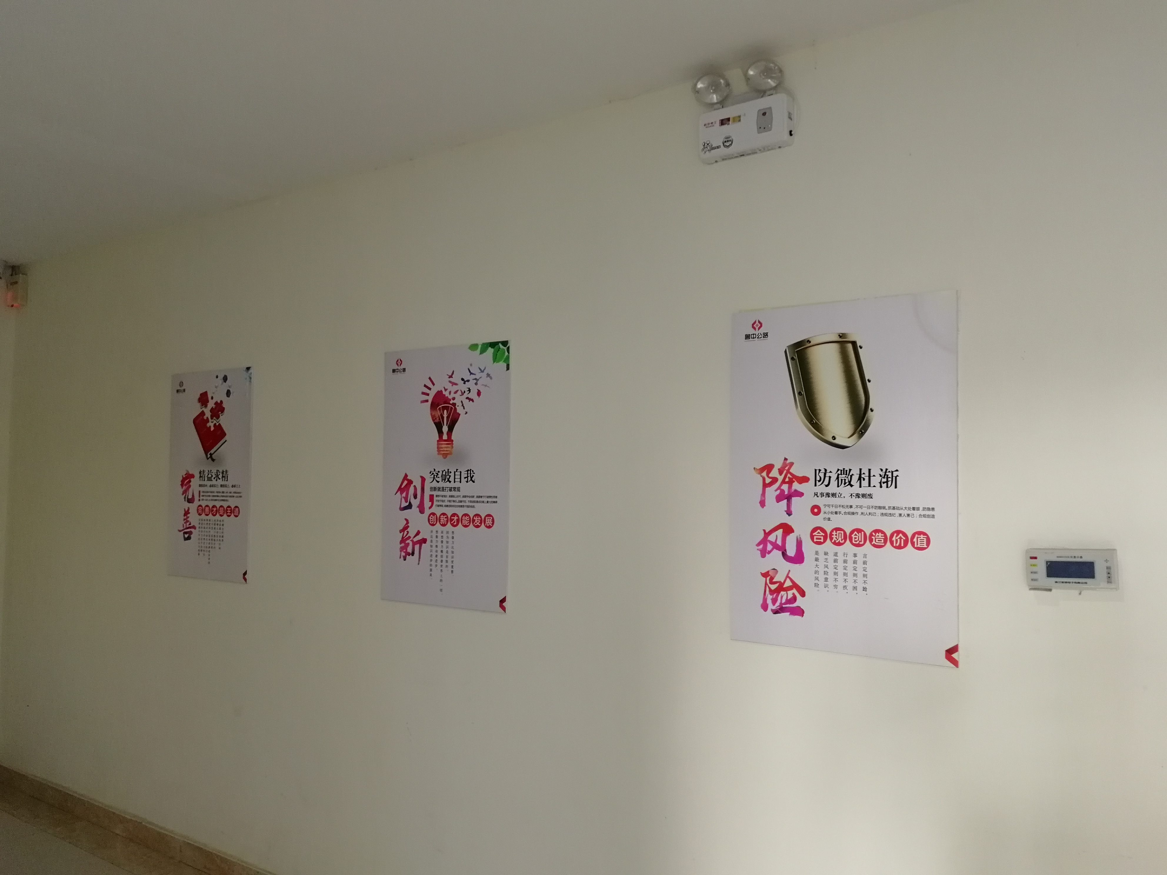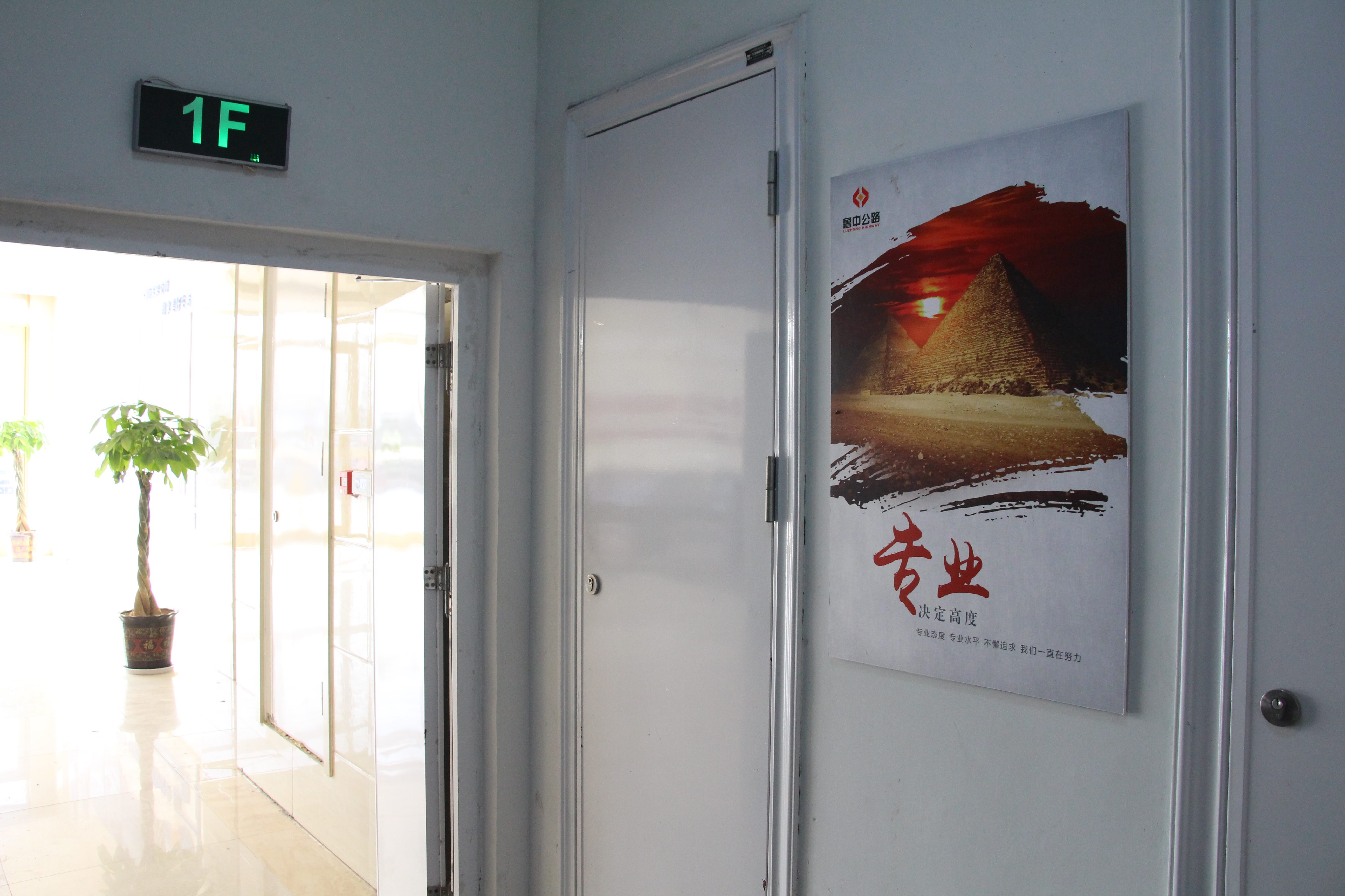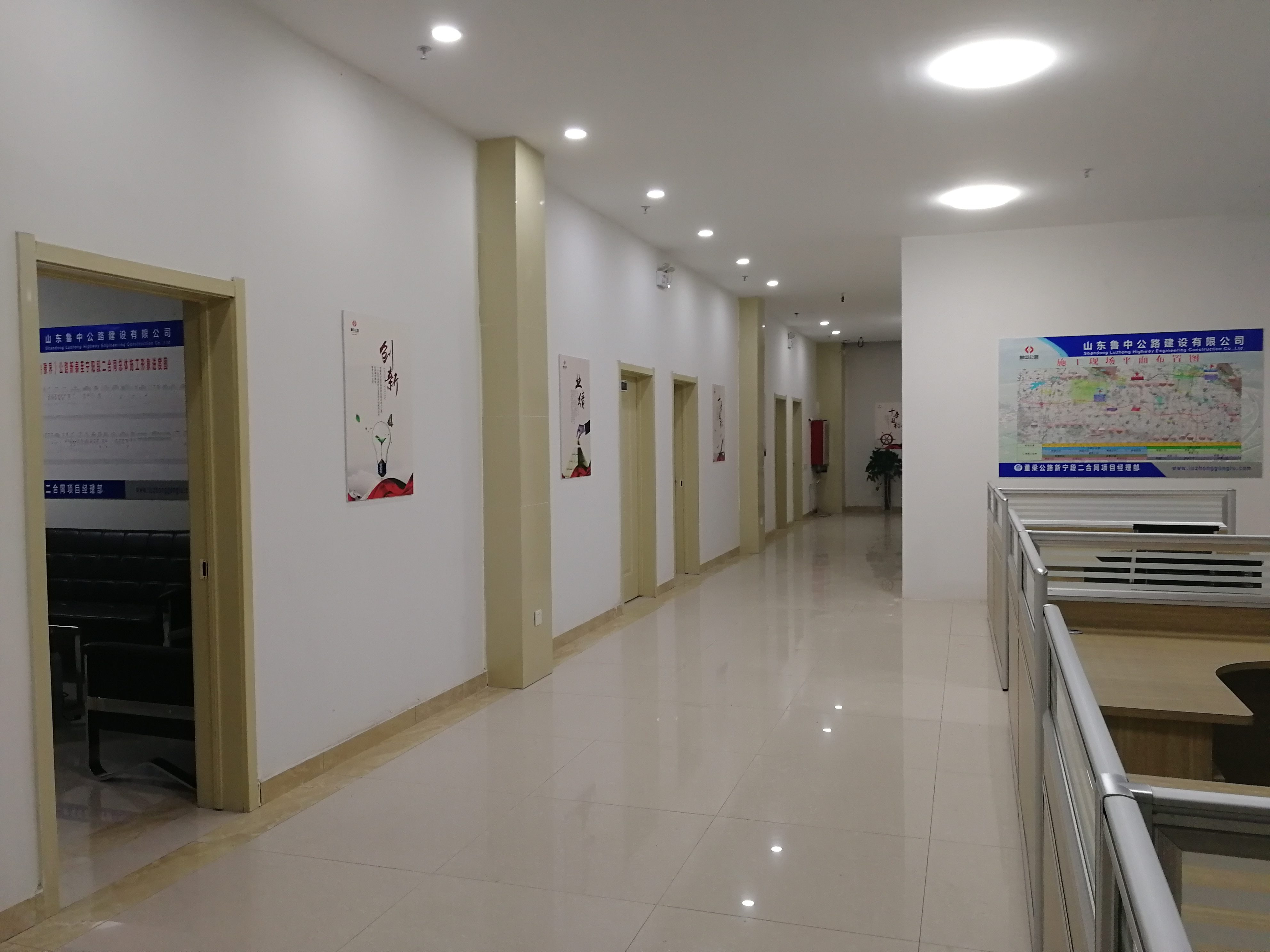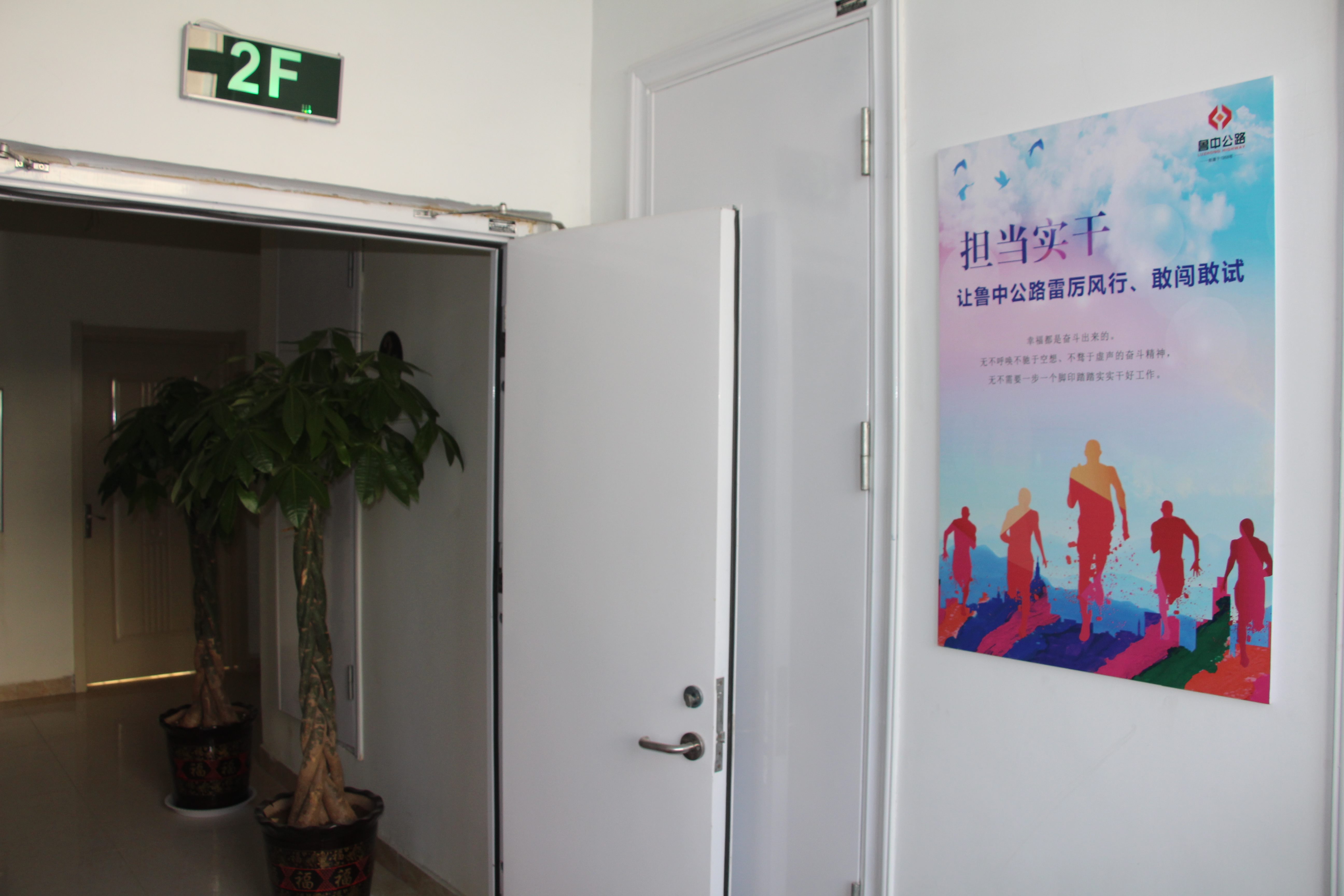 推開項目部大門,進入一樓大廳內(nèi),首先映入眼簾的是魯中公路標志及文化標語。