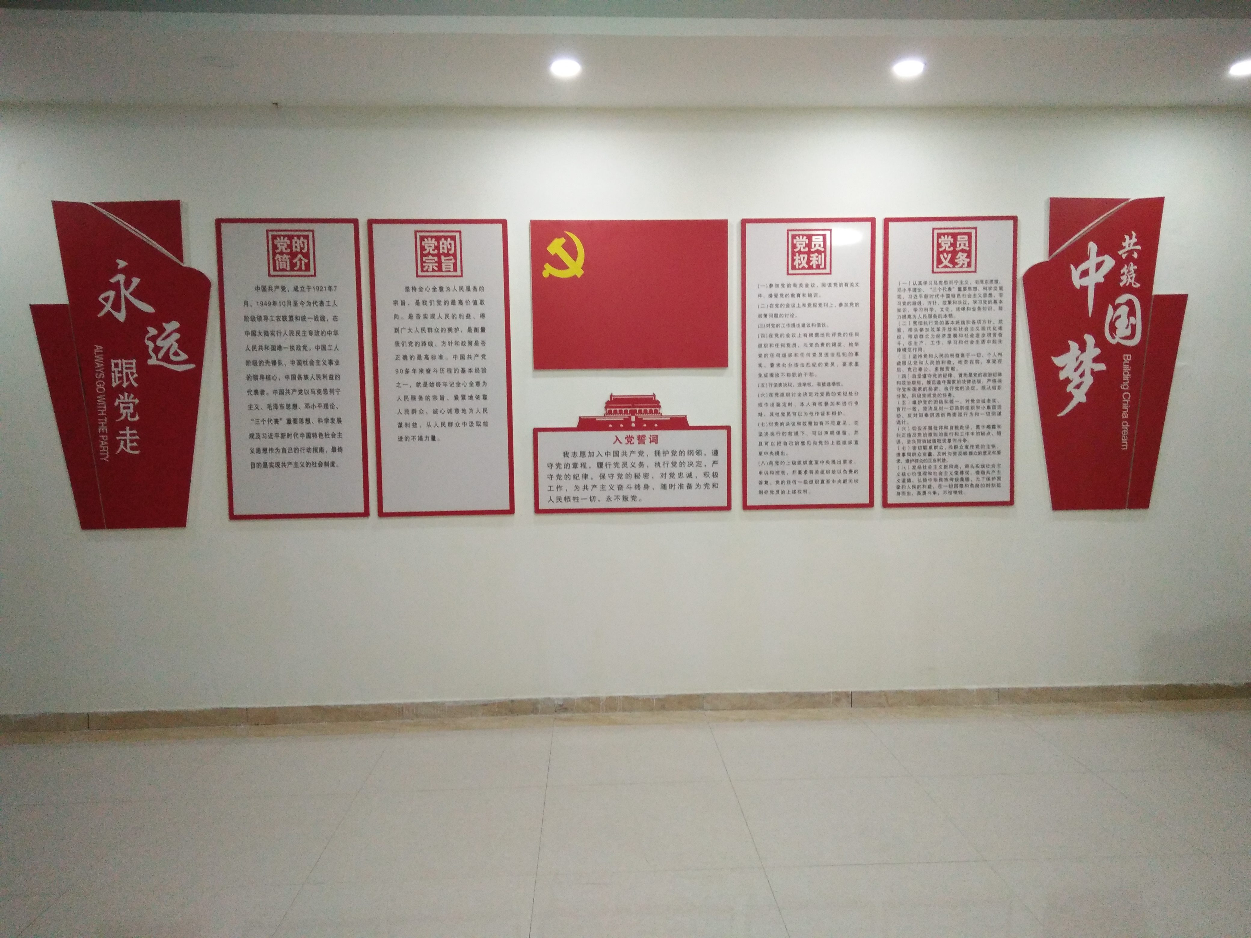 黨員活動室內(nèi)的文化墻。