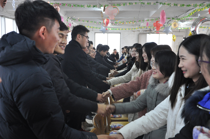 “自動(dòng)工作”是魯中公路年輕人必備的職業(yè)素養(yǎng),“主動(dòng)爭(zhēng)取愛情”則是公司對(duì)年輕人在生活中同樣必須擁有“自信與擔(dān)當(dāng)”的基本要求。本屆聯(lián)誼會(huì)為年輕人量身打造的第一個(gè)團(tuán)隊(duì)游戲就是“我要認(rèn)識(shí)你”,通過簡單的介紹,記住彼此的姓名,全組成員協(xié)同在紙上寫下大家選出隊(duì)員姓名。笑著、鬧著、打趣著,紙上躍然而出的是已經(jīng)熟悉的名字。