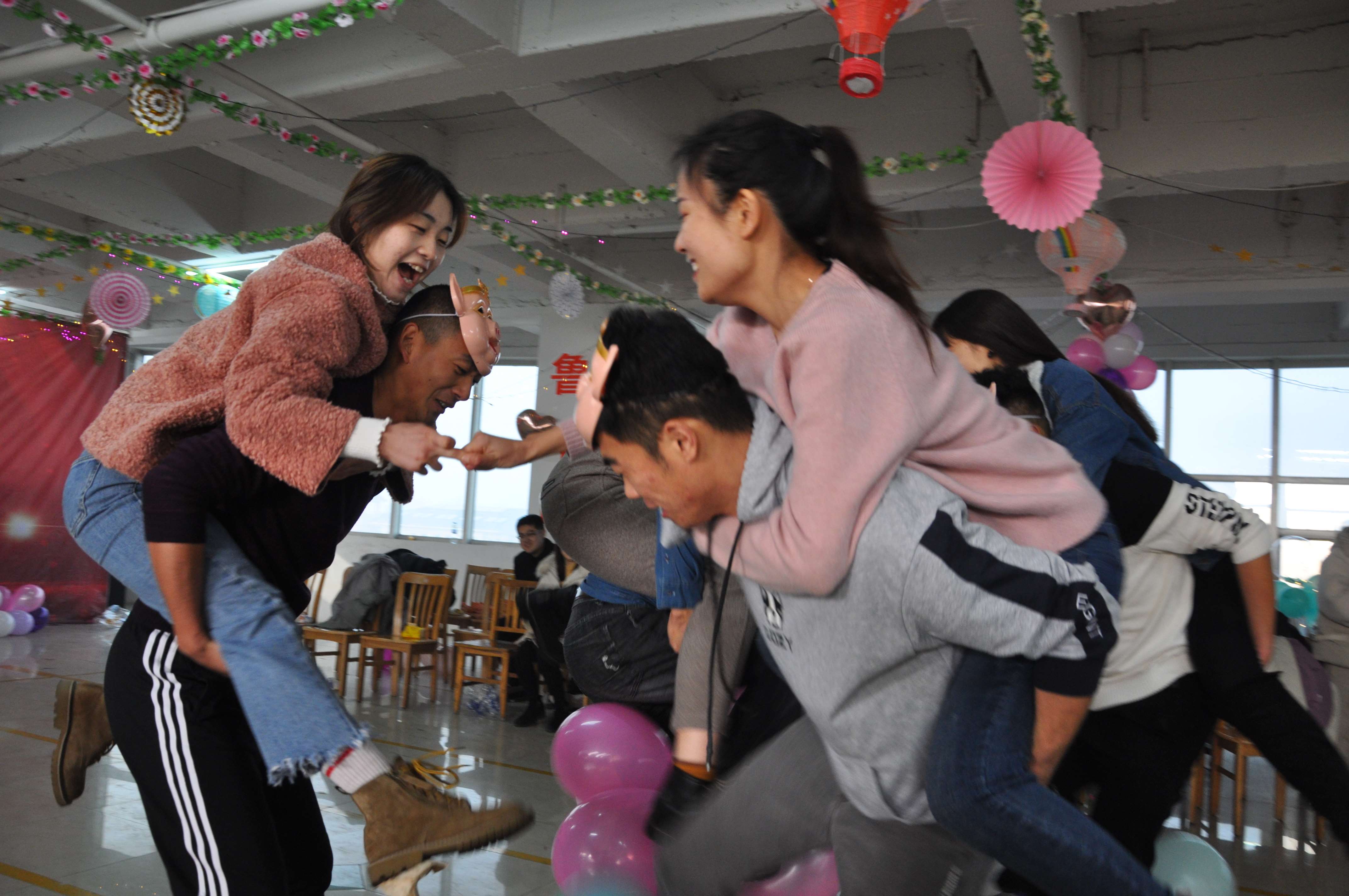 通過“認(rèn)識(shí)你”,展現(xiàn)出青年人團(tuán)結(jié)協(xié)作、擔(dān)當(dāng)果敢,和快速掌握技巧的大智慧。接下來則是為契合豬年諸事順利、心想事成,極力展現(xiàn)男孩子們個(gè)人魅力而設(shè)計(jì)的“八戒闖關(guān)”游戲。男生們紛紛帶上八戒面具,背著女孩子斬關(guān)奪隘,緊張火熱的游戲,引來大家喝彩、尖叫聲不斷。一個(gè)堅(jiān)毅而踏實(shí)的臂膀,不僅僅能壘砌通天下的路,更能為心中的她擎一片天,守護(hù)一生的幸福。