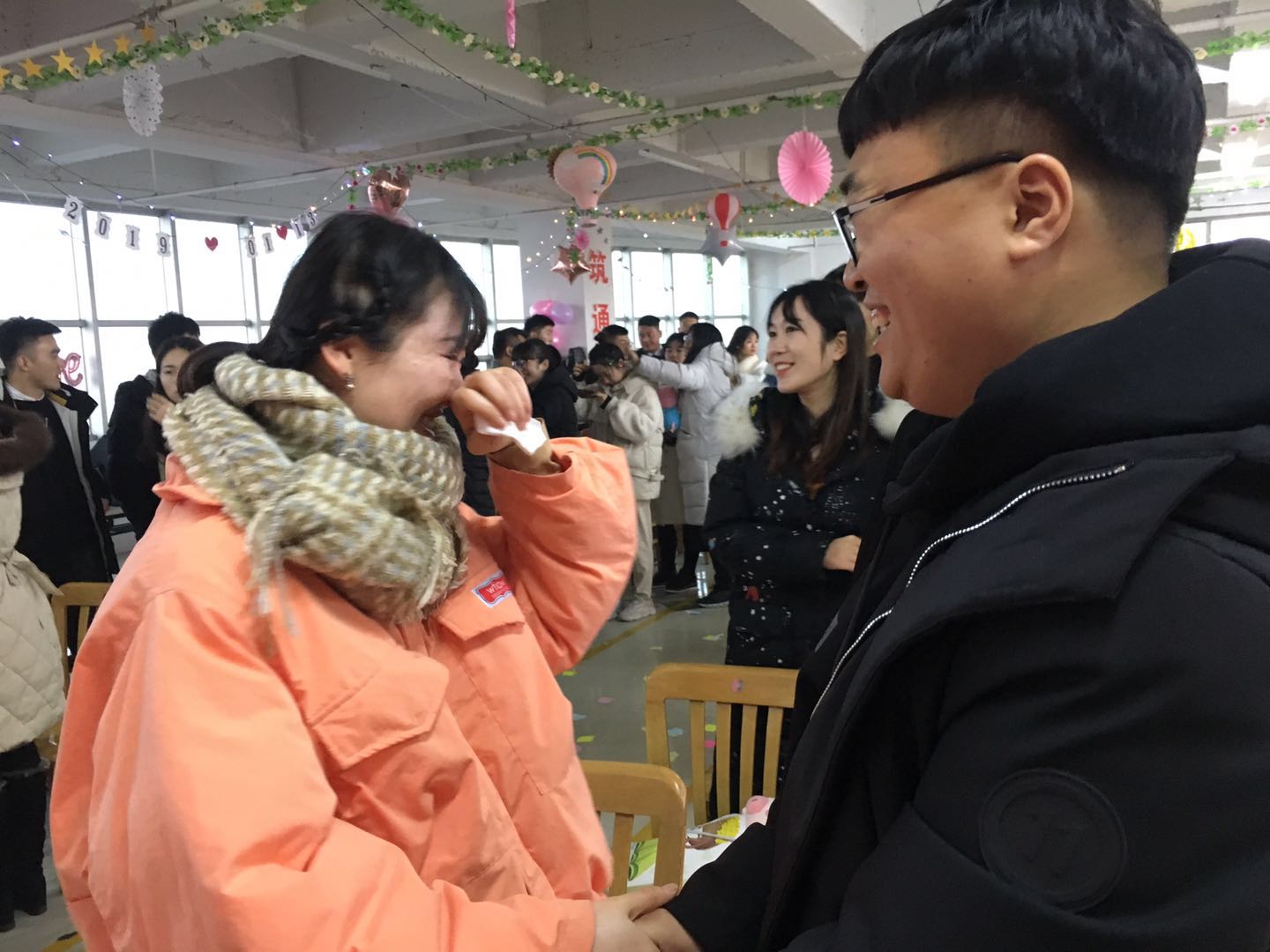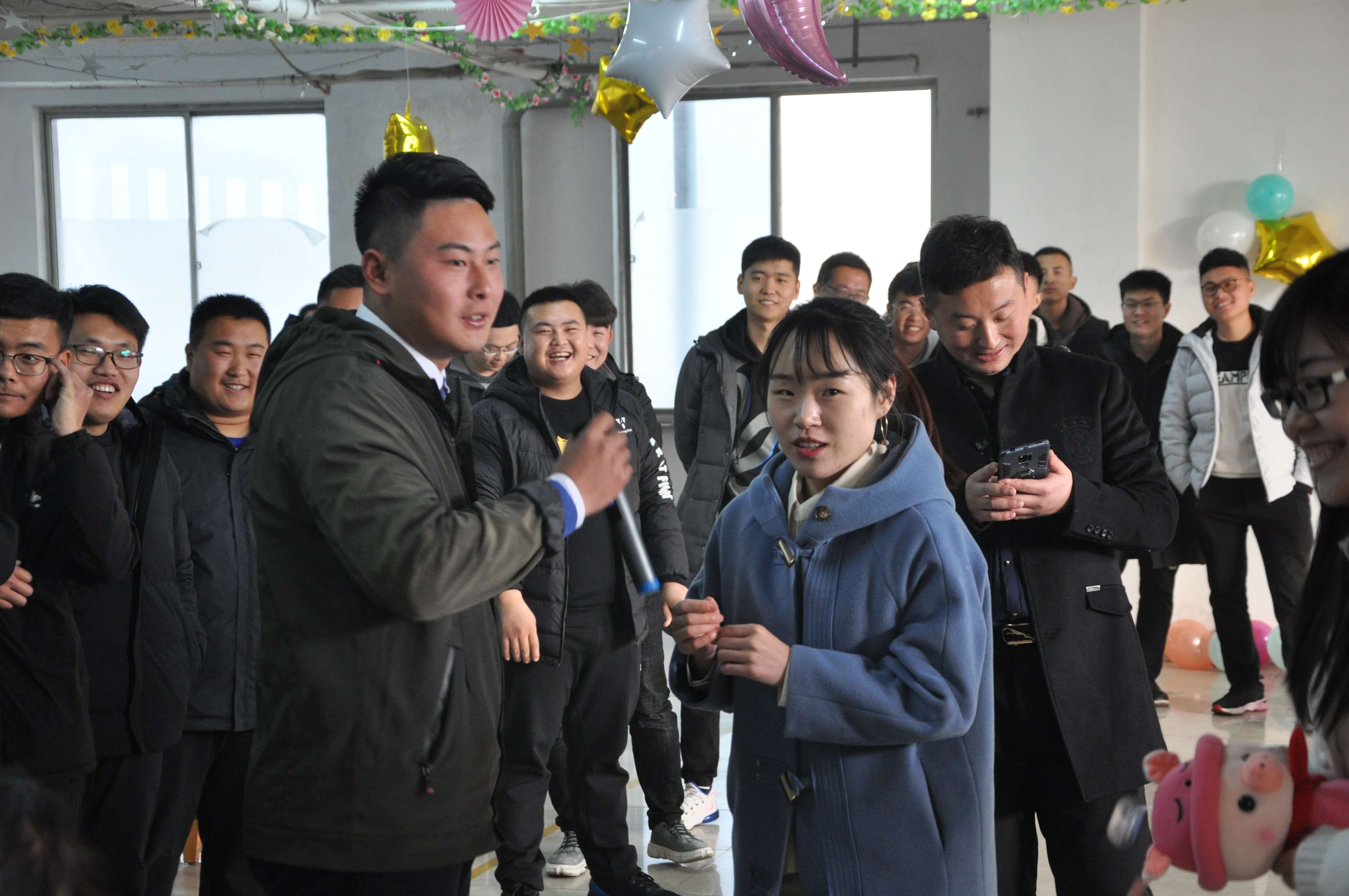 13:14分,隨著全場(chǎng)人員的倒計(jì)時(shí),成功開啟了本屆聯(lián)誼會(huì)寓義著“一生一世”的愛情密碼,原本陌生的彼此,解開心中的冰層,伴隨著熱情的音樂,大家圍圈而舞,先前的拘謹(jǐn)與羞澀,在律動(dòng)中逐漸褪去,整個(gè)會(huì)場(chǎng)氣氛熱情高漲,一片歡聲笑語。