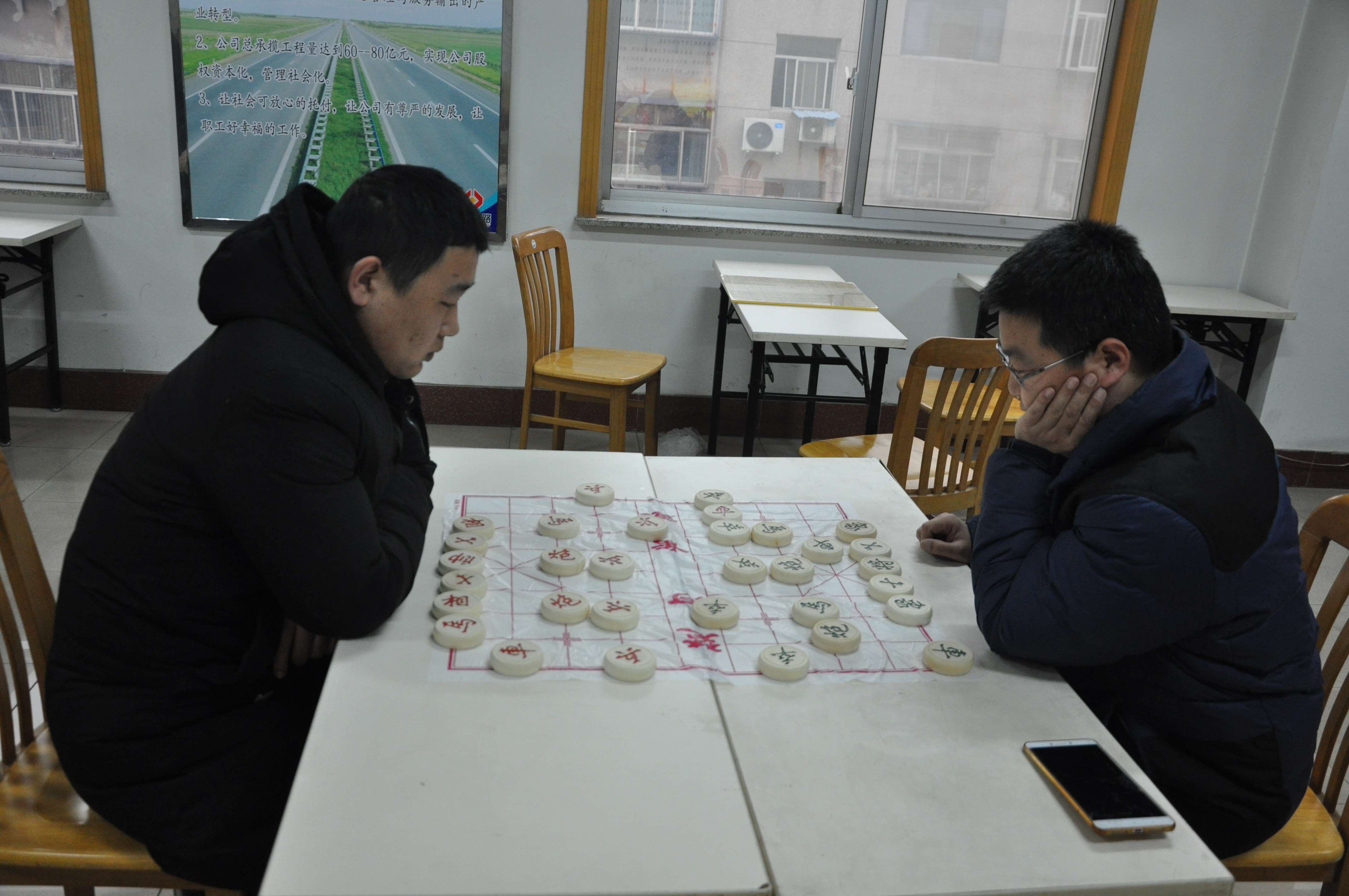 展示傳統(tǒng)棋藝,弘揚(yáng)民族文化。象棋比賽比吸引了近20人參賽,兩軍對(duì)壘,雙方斗智斗勇,妙招頻出,或沉思良久緩慢出招,或胸有成竹落棋有聲,在小小的棋盤(pán)上體驗(yàn)著博弈帶來(lái)的樂(lè)趣。