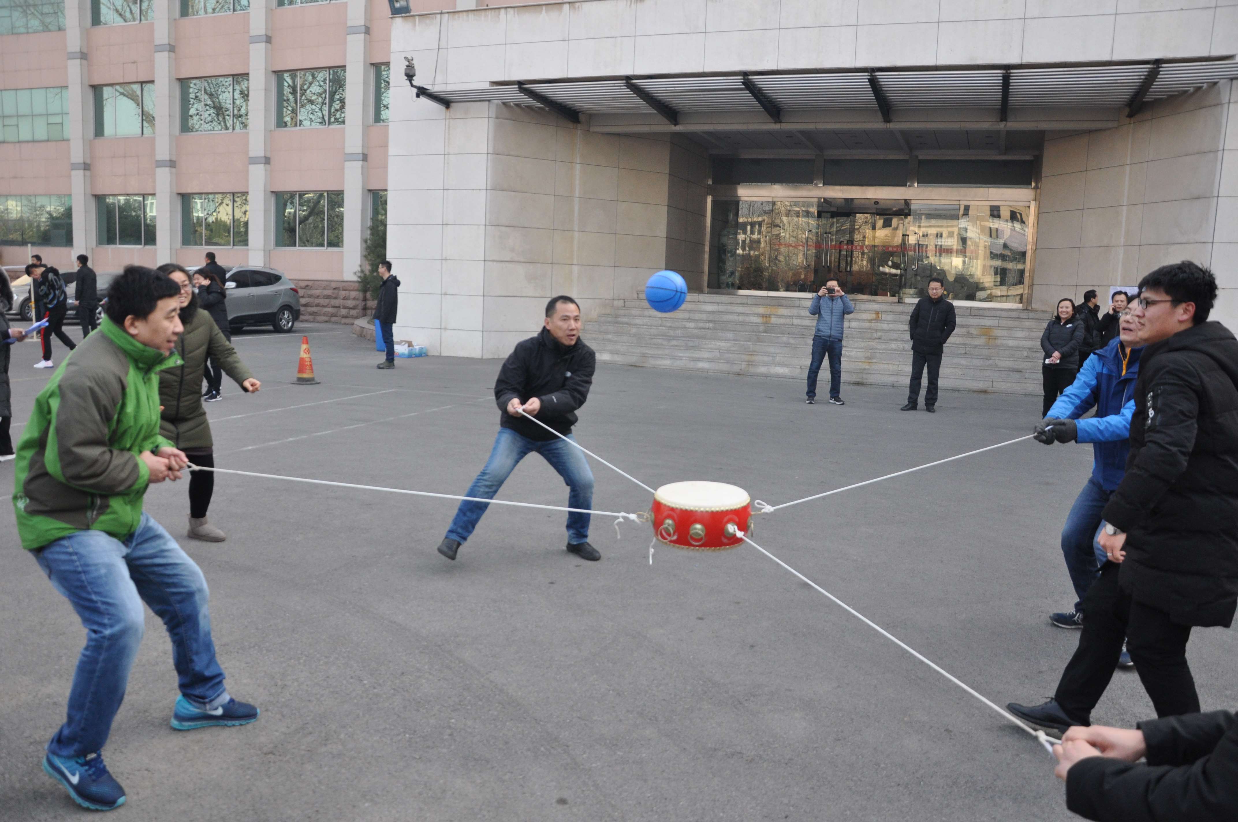 比賽中隊(duì)員們團(tuán)結(jié)一心,積極配合。將球輕輕地用鼓一拍一動(dòng)顛向空中,發(fā)出有規(guī)律的鼓聲。這樣的動(dòng)作看似簡(jiǎn)單,實(shí)則極大地考驗(yàn)著隊(duì)員們配合的默契程度,每一次看著即將掉了的球卻又戲劇性的救回來(lái),都讓大家驚心動(dòng)魄。
