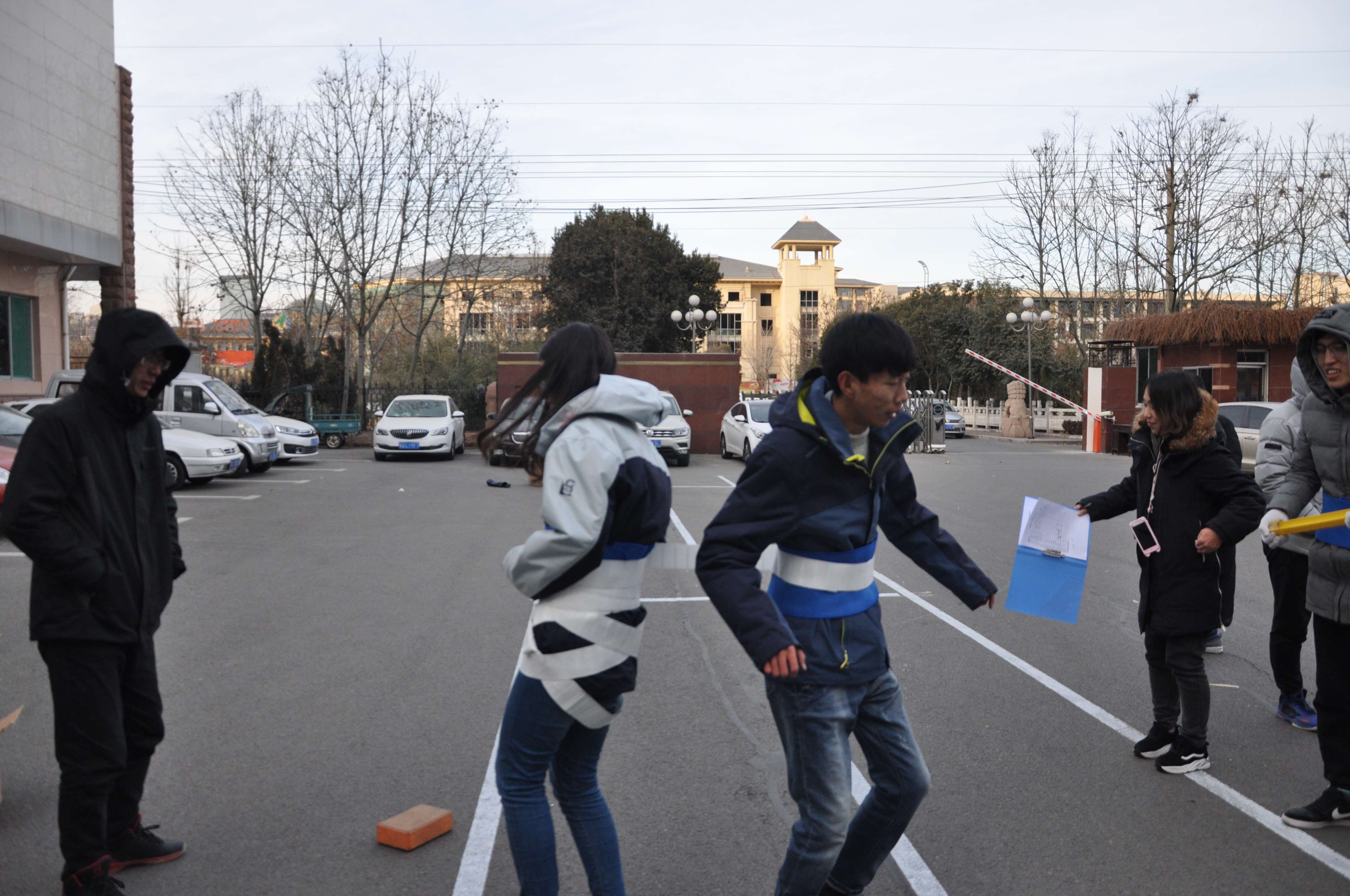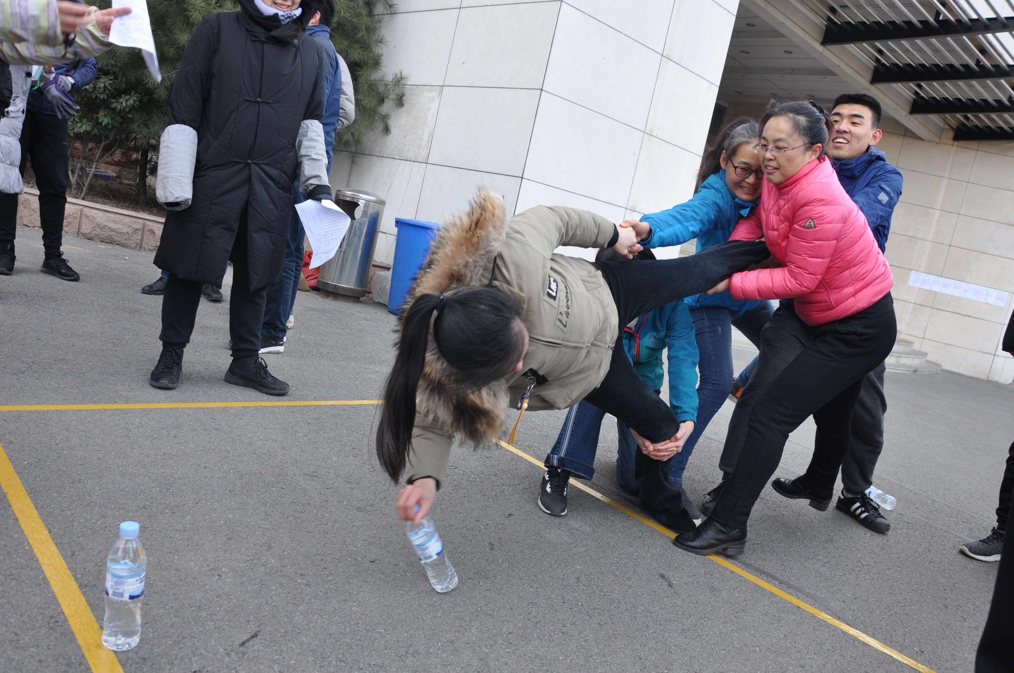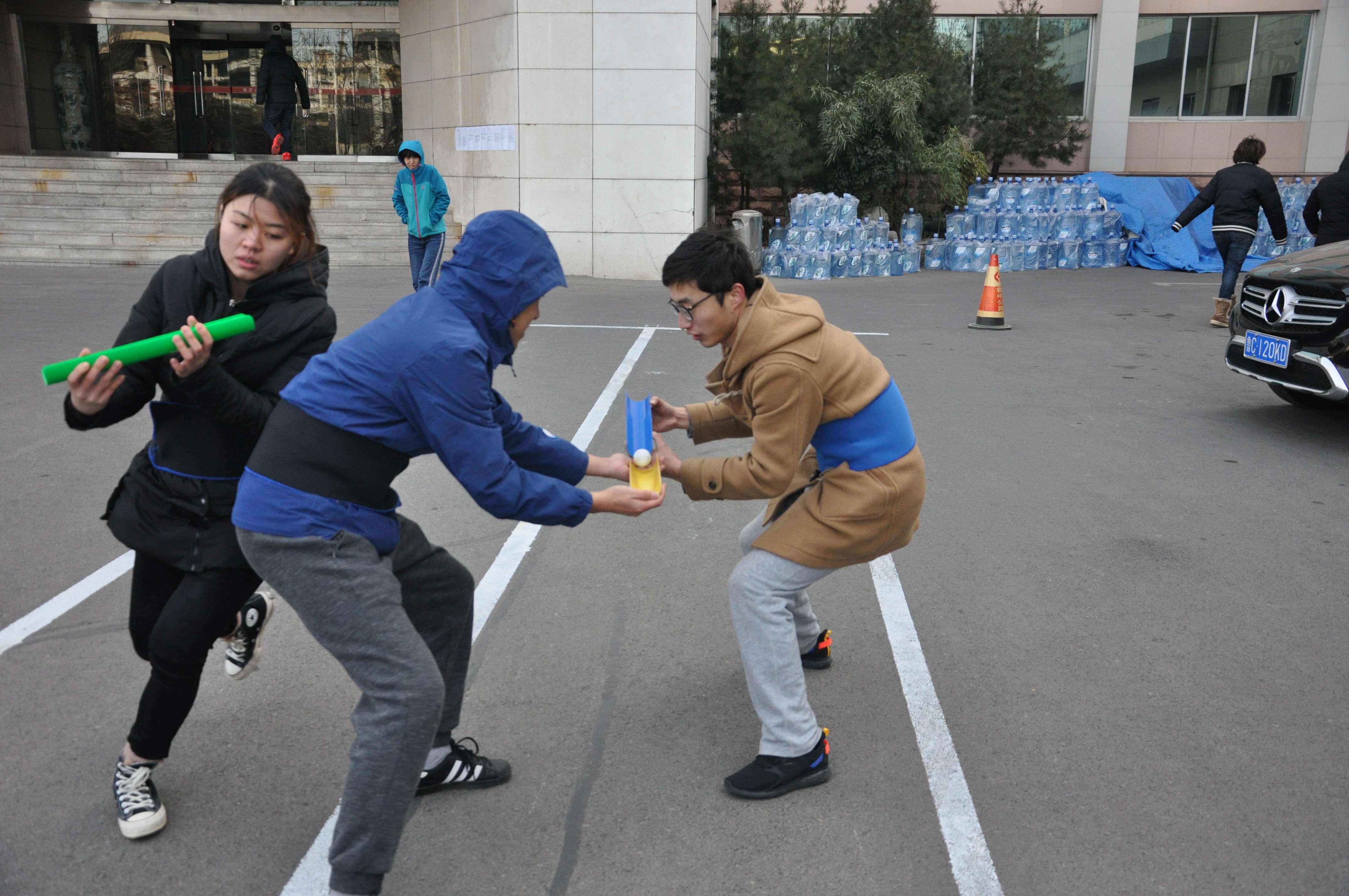 這是一個(gè)既挑戰(zhàn)默契,又極挑戰(zhàn)體力和方向感的項(xiàng)目。三位隊(duì)員首先要沉住氣,交替把球運(yùn)至終點(diǎn),又要接受耐力的考驗(yàn),踩“石頭”過(guò)河,最后用盡洪荒之力,相互纏繞,傳遞布條,整個(gè)比賽過(guò)程笑聲不斷,妙趣橫生,引來(lái)觀戰(zhàn)者陣陣喝彩。