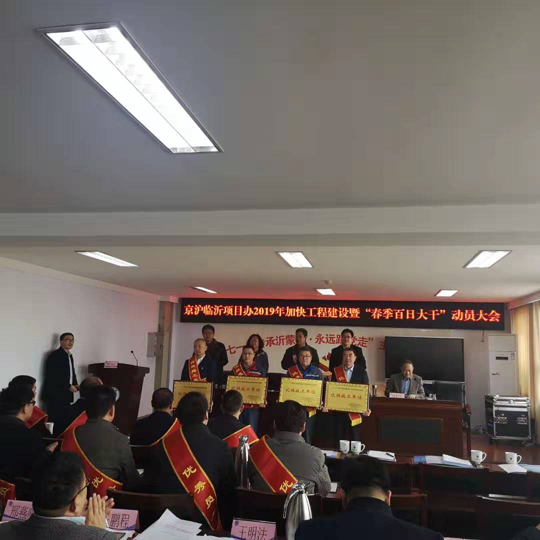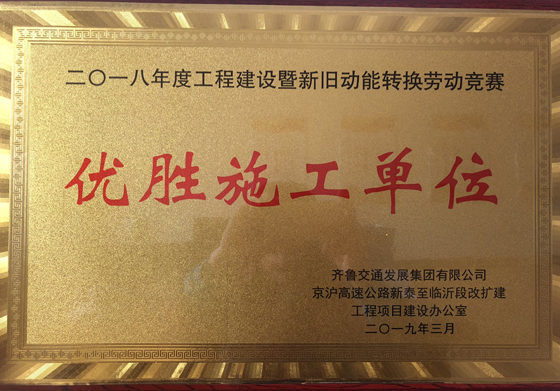 2019年3月9日,京滬臨沂項(xiàng)目辦舉行2019年加快工程建設(shè)暨“春季百日大干”動(dòng)員大會(huì)上,表彰了2018年涌現(xiàn)出的先進(jìn)單位和先進(jìn)個(gè)人,山東魯中公路建設(shè)有限公司作為京滬高速公路建設(shè)的排頭兵,一直兢兢業(yè)業(yè),恪盡職守,嚴(yán)格按照公司部署,執(zhí)行公司決定,堅(jiān)定不移、不打折扣地落實(shí),發(fā)揚(yáng)魯中人吃苦耐勞,團(tuán)結(jié)協(xié)作的精神,樹(shù)立敢闖敢拼,廢寢忘食的先進(jìn)典型,以點(diǎn)帶面,共同進(jìn)步。