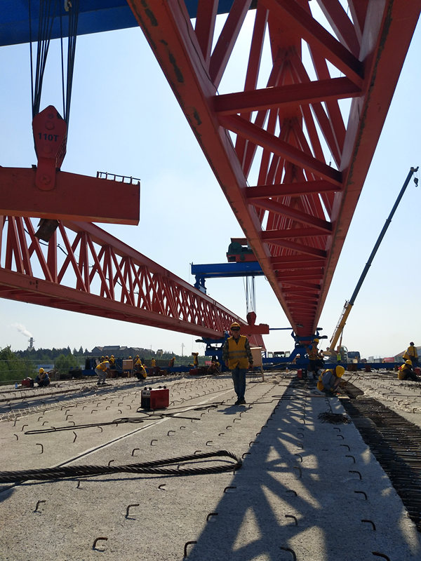 橋上的工人們也都在忙碌著,有夯實機的聲音、有起重機的聲音、有混凝土泵車的聲音,眾多聲音交匯融合,大橋被映襯的生機勃勃。