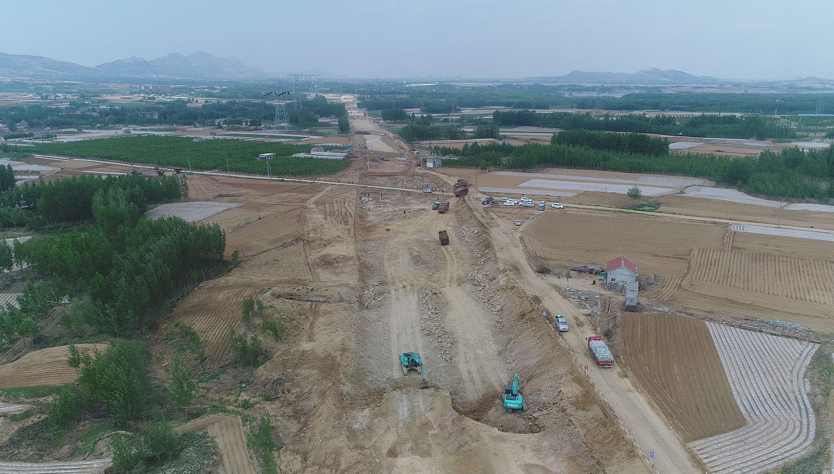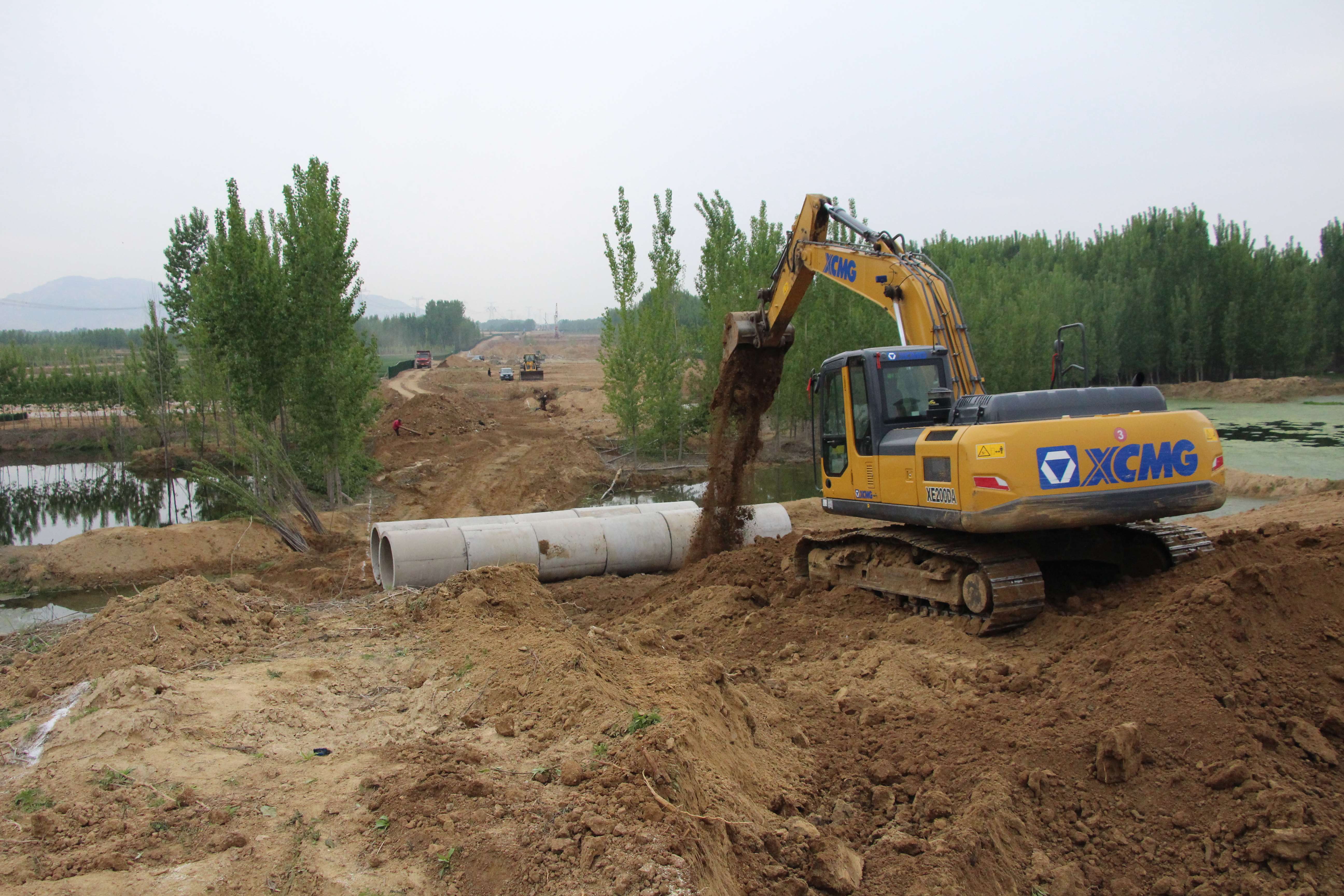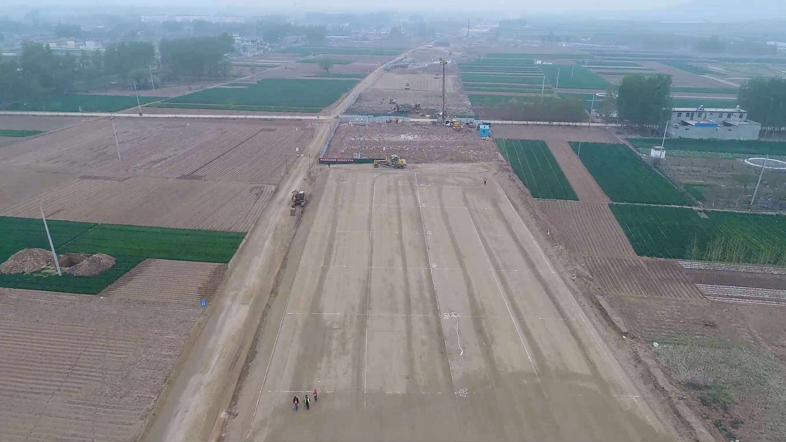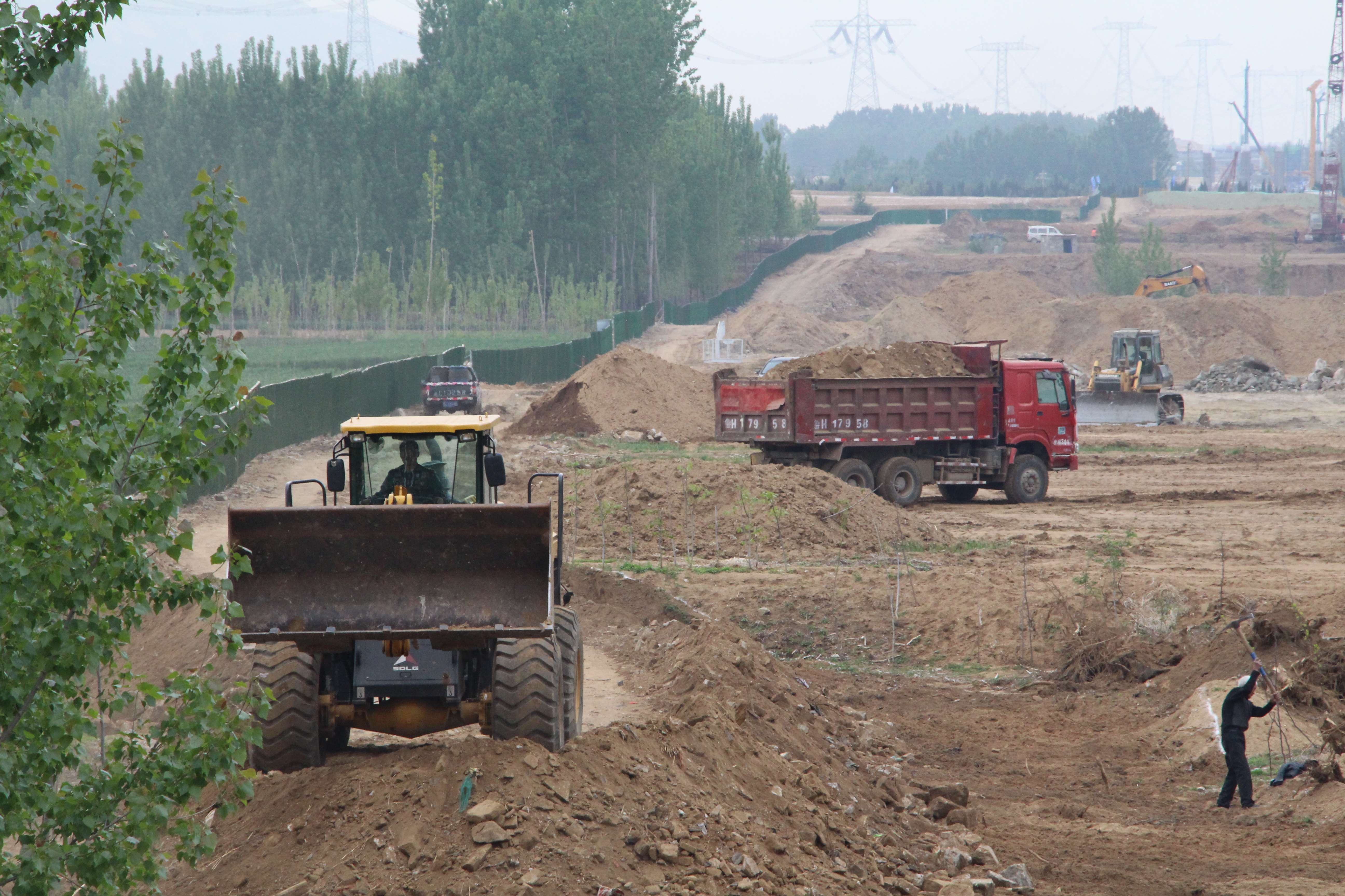 高鐵西側(cè)k57+500附近,現(xiàn)場負(fù)責(zé)人楊新剛正和施工隊一道進(jìn)行便道施工。