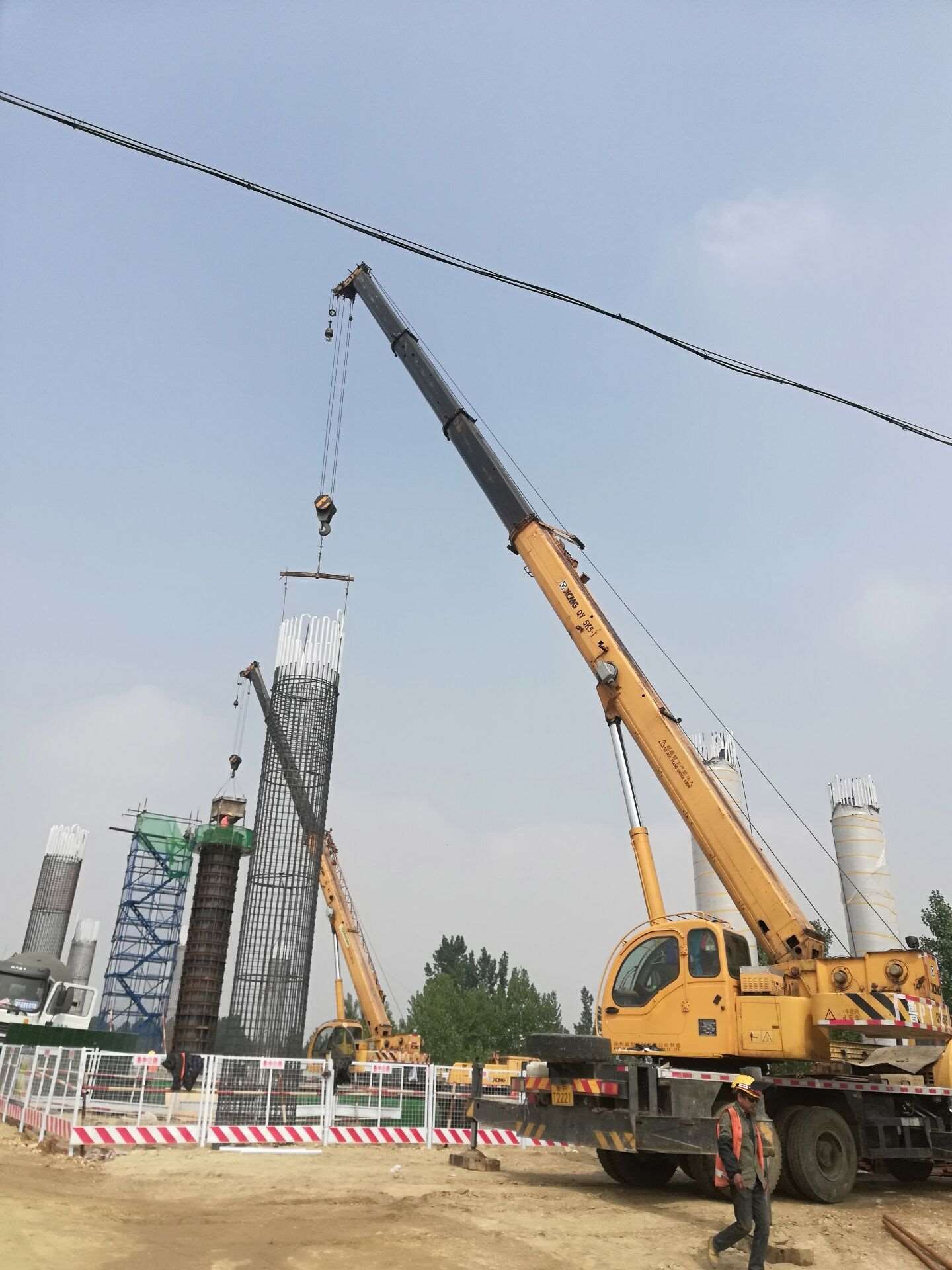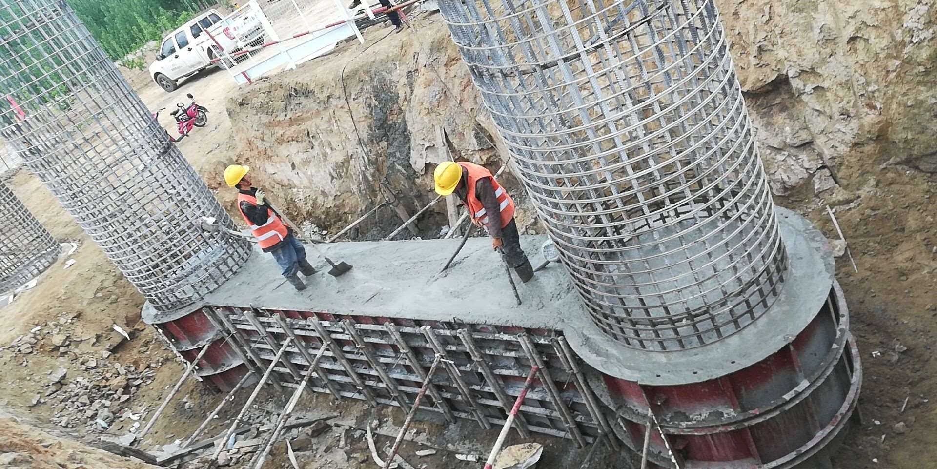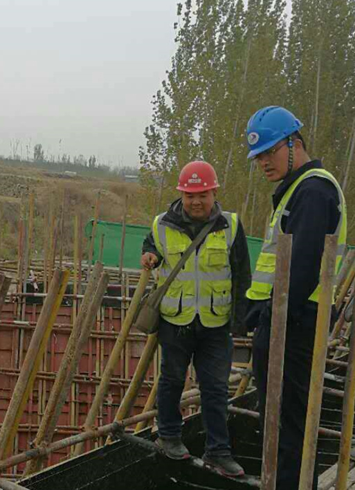 興隆莊特大橋施工現(xiàn)場,現(xiàn)場負(fù)責(zé)人朱恒正在指揮機械、工人進(jìn)行墩柱及系梁澆筑施工。