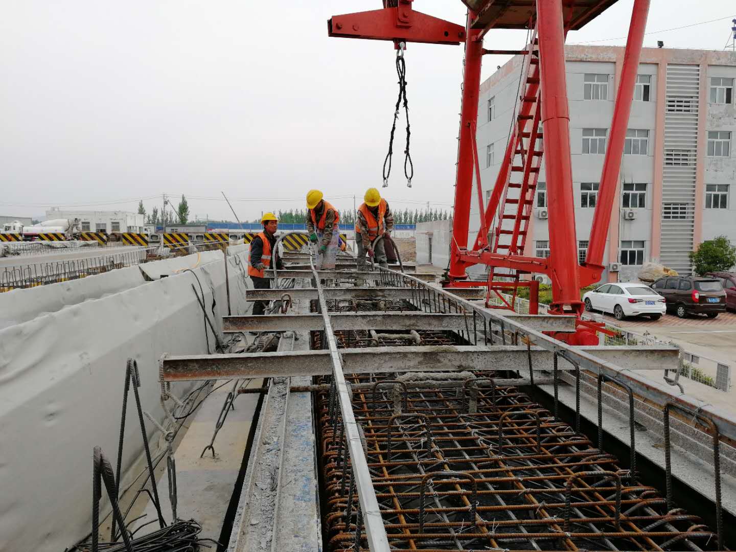 二分部華豐梁場,梁場負(fù)責(zé)人徐永文正指揮工人進(jìn)行預(yù)制箱梁準(zhǔn)備工作。