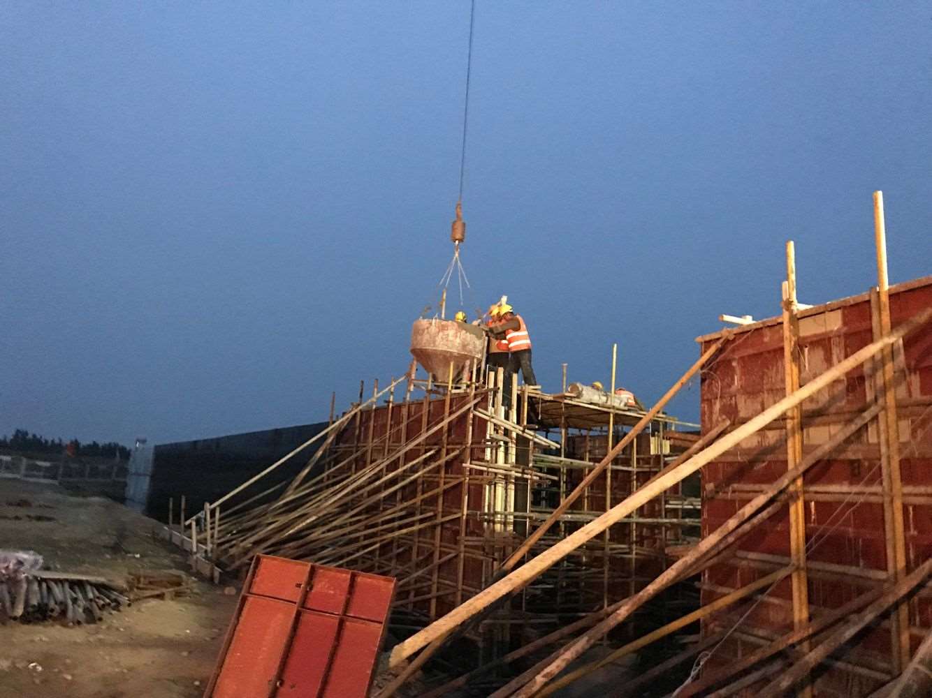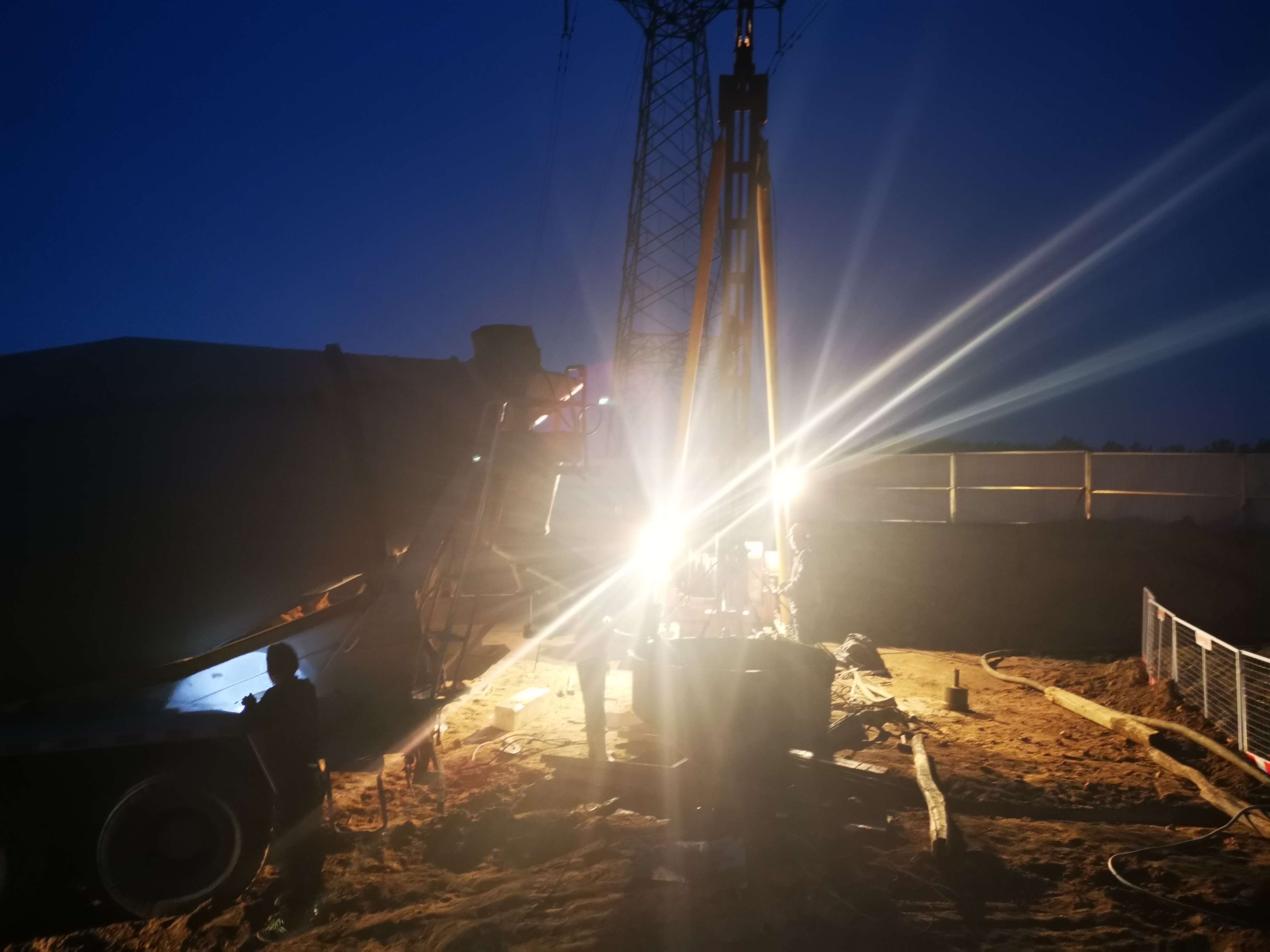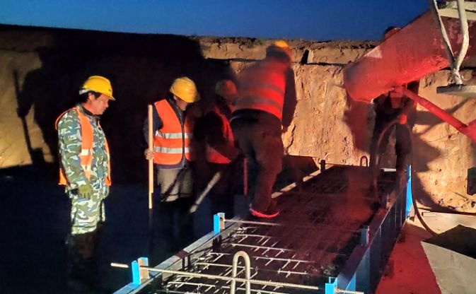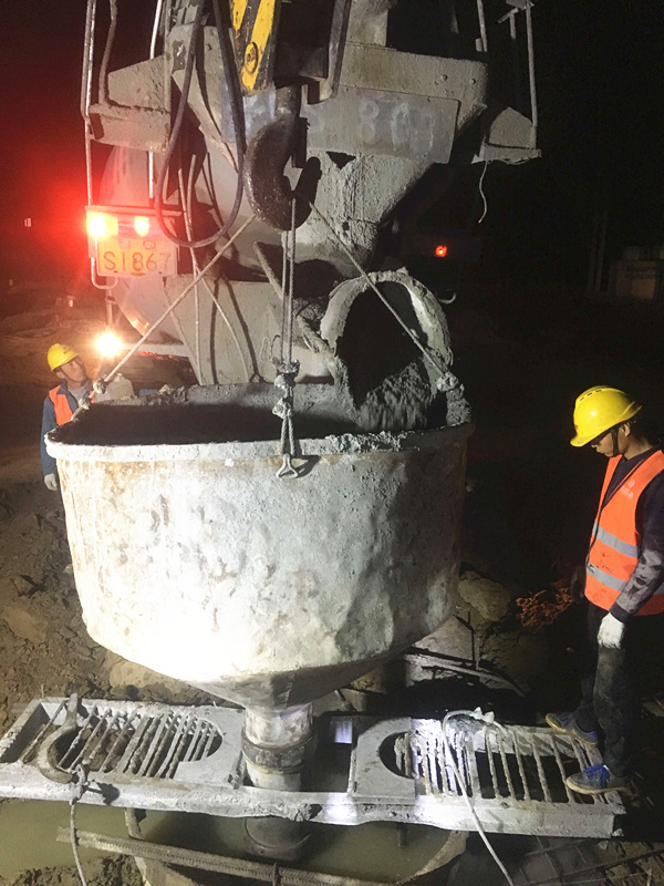 由于今晚還有樁基灌注任務(wù),范廣金、趙祥坤、劉亞坤等幾名現(xiàn)場管人員匆匆拔了幾口飯便又返回了現(xiàn)場,隨著一車車混凝土運到施工現(xiàn)場,伴著一根根樁基、系梁、一片片涵身順利澆灌完畢,時間也已來到了晚上22:00。