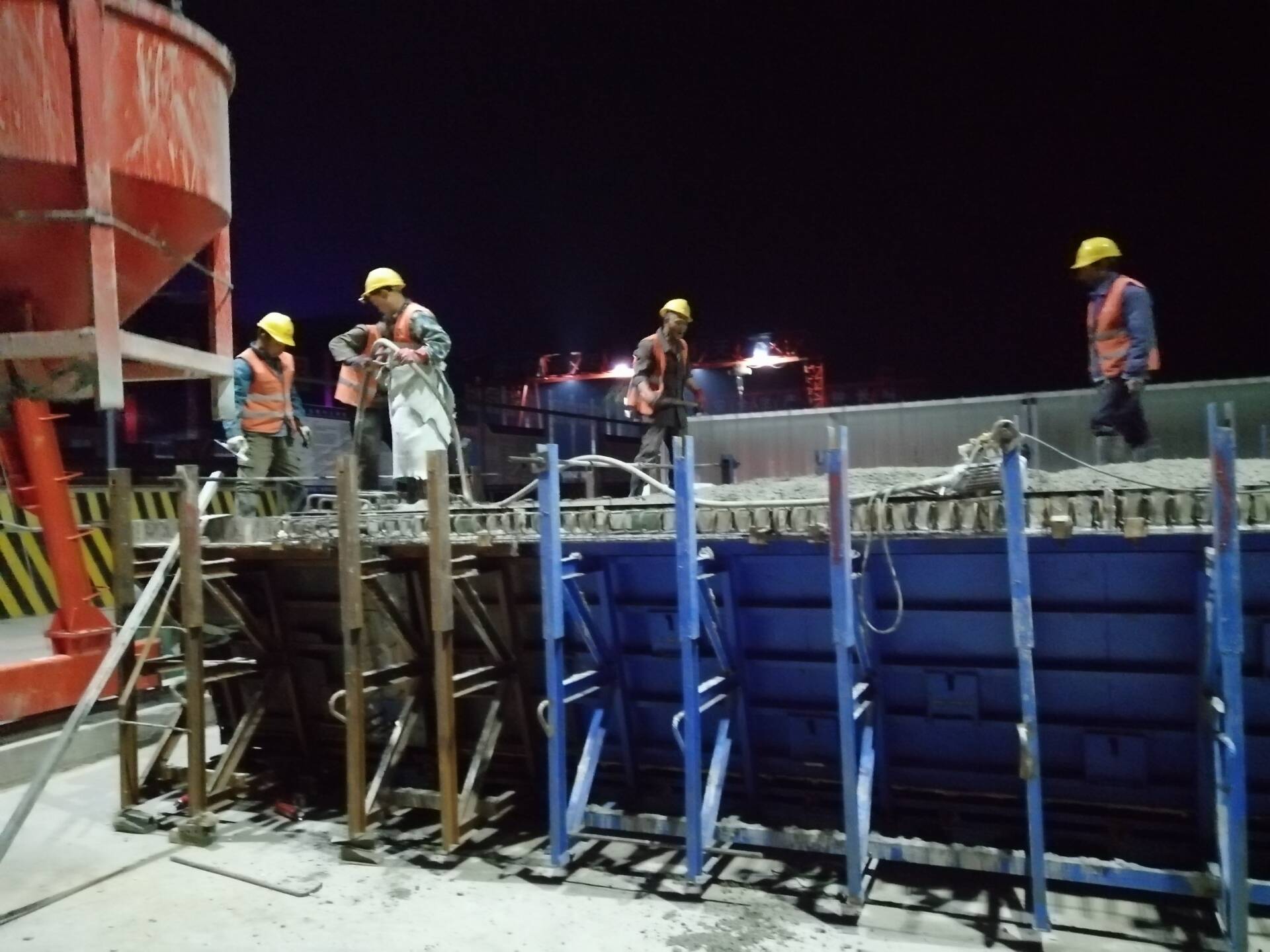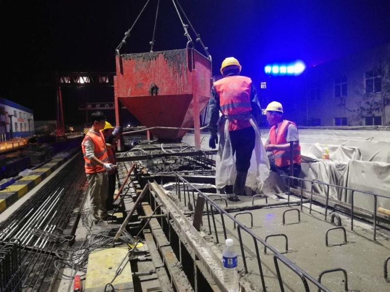 為了確保“春季百日大干”計劃產(chǎn)值如期、超額完成,項目部合理安排工序,進(jìn)行交叉作業(yè),充分利用時間,根據(jù)工序安排,夜間施工一般進(jìn)行的是鋼筋綁扎和混凝土澆筑。在忙碌一天后,夜間的施工隊現(xiàn)場管理人員要求極高,無論從質(zhì)量方面還是安全方面,都要付出更多的精力。