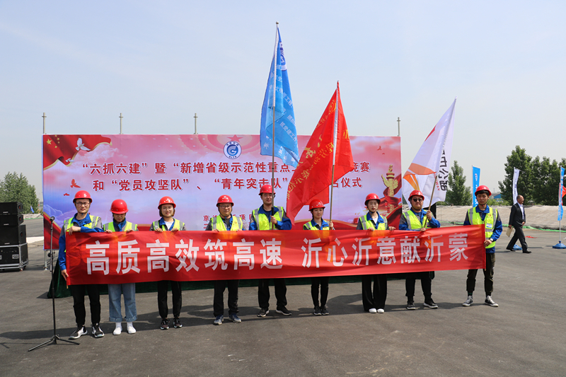 為落實全省“擔(dān)當(dāng)作為、狠抓落實”動員大會精神,推動“當(dāng)好主力軍、聚力新動能、建功新時代”勞動競賽暨新增省級示范性重點工程勞動競賽深入開展,激勵廣大黨員和團員青年在工作中充分發(fā)揮生力軍和突擊隊作用,加快推進(jìn)工程建設(shè),5月7日,京滬臨沂項目辦在六標(biāo)棗園互通施工現(xiàn)場舉行 “六抓六建"暨新增省級示范性重點工程勞動競賽和“黨員攻堅隊”“青年突擊隊”授旗簽名活動。