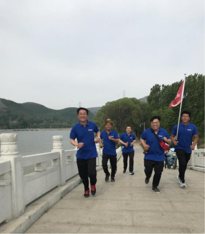 隨著項目經理的一聲令下,大家向前方奮勇跑去,不多時,年輕氣盛的小伙子們大步奔跑遙遙領先,年長的前輩們則在隊伍后面快步走著,前后呼應,倒也相映成趣。