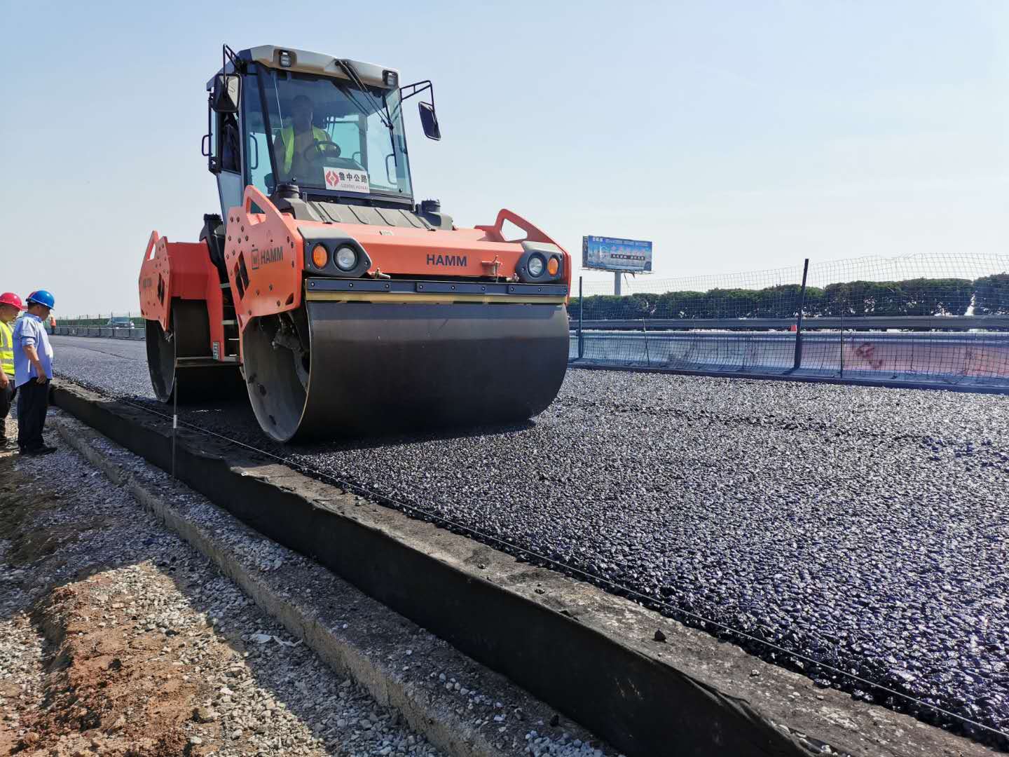 在之后的沭河大橋攤鋪之行,大家經(jīng)過合作磨合,頓感輕松一些,但對(duì)于艱巨的任務(wù),大家不敢掉以輕心,拿出之前干路基的猛干精神,奮然在束河大橋上堅(jiān)守了25小時(shí),順利拿下沭河大橋之戰(zhàn)。頂著驕陽,大家也不帶帽子,長期的暴曬,膚色都黑黑的,習(xí)以為?;ハ嗄么舜蛉?,同事之間不經(jīng)意間的玩笑話,緊張的工作帶來的疲憊瞬間消失地?zé)o影無蹤。為了迅速拿下這段工程,大家一致決定,連續(xù)作業(yè),一天完成,不耽誤下一次的機(jī)械調(diào)轉(zhuǎn)準(zhǔn)備。油層機(jī)械隊(duì)伍極力配合,在道路寬度發(fā)生變化時(shí),迅速組裝好攤鋪機(jī),不影響今天的進(jìn)度計(jì)劃。