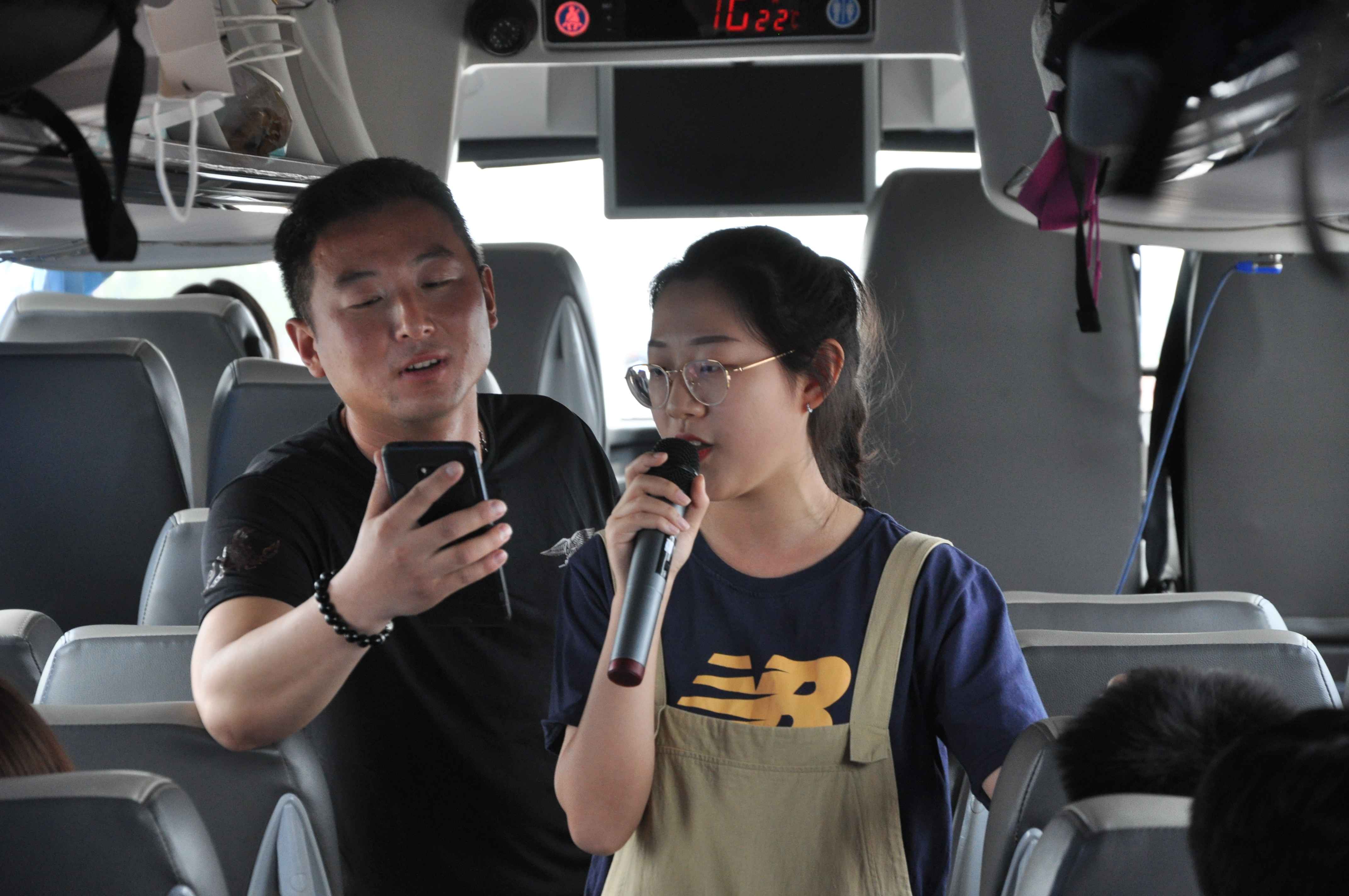 結(jié)束了G2項(xiàng)目的參觀及職業(yè)體驗(yàn),大巴車(chē)再次起程,驅(qū)車(chē)前往臺(tái)兒莊古城。一路上大家的話題開(kāi)始多了起來(lái),大家彼此之間多了“路”與“橋”做連接。隨著大巴車(chē)緩緩駛?cè)胗刑煜碌谝磺f之稱的臺(tái)兒莊,發(fā)生在這片土地上的故事和淵源吸引了一行人的興致。用歌聲寄情懷,大巴車(chē)也再次開(kāi)啟了K歌模式,先由市兒童活動(dòng)中心幼兒園工會(huì)吳主席帶領(lǐng)大家唱響《我和我的祖國(guó)》、《歌唱祖國(guó)》,開(kāi)始了紅歌聯(lián)唱,緊接著每個(gè)人一展歌喉,從經(jīng)典流行到童謠歌曲,整個(gè)旅途都熱鬧起來(lái)。