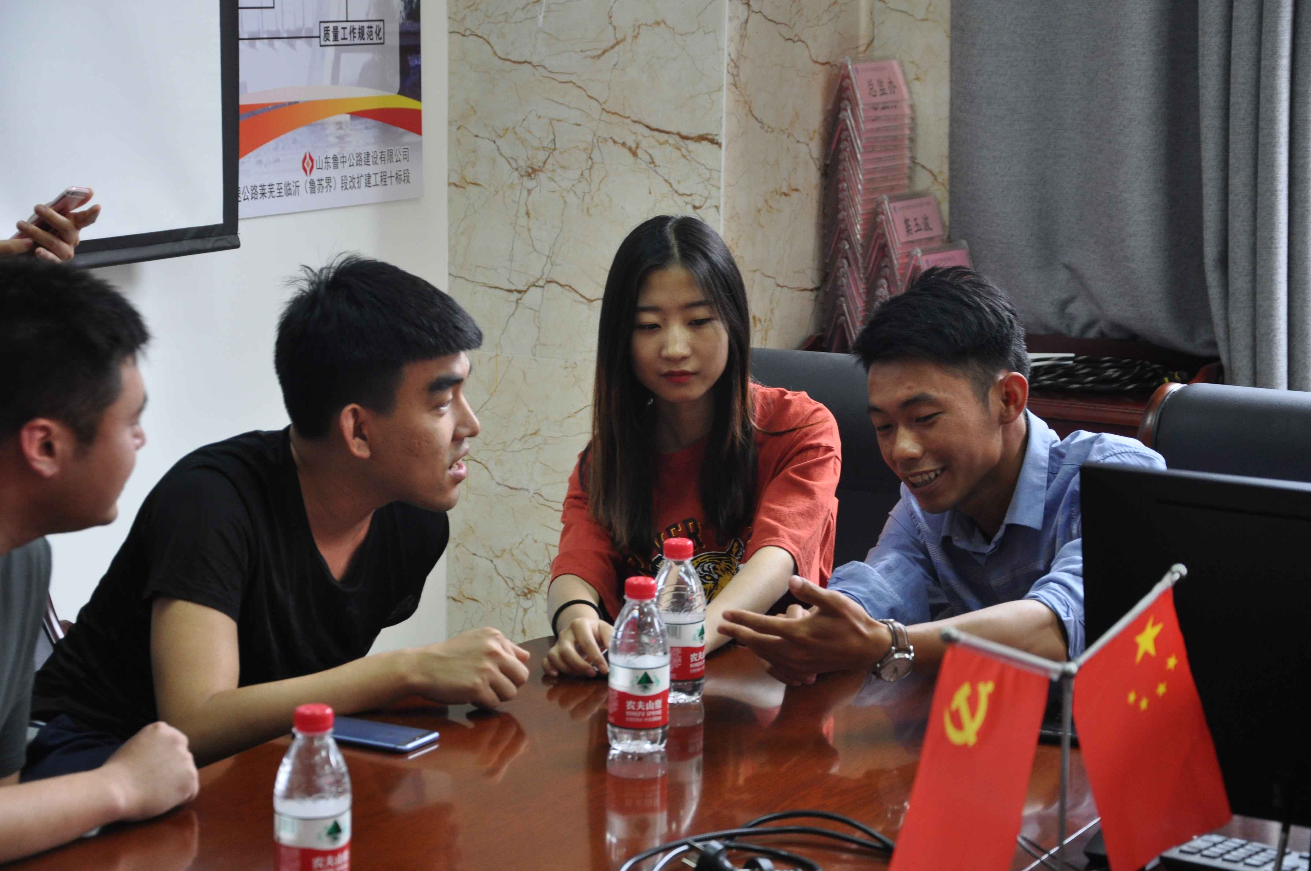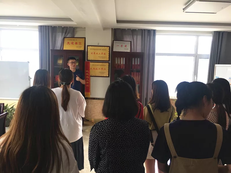 為了一解姑娘們舟車(chē)勞頓,小伙子們?cè)缭绲臏?zhǔn)備了果盤(pán)、零食,大家在G2京滬高速項(xiàng)目部的會(huì)議室歡聚一堂,辦公室主任魏玉波向市兒童活動(dòng)中心的老師們做了項(xiàng)目介紹及幽默風(fēng)趣的歡迎儀式,使年輕人們記住彼此的姓名,消除了拘束。