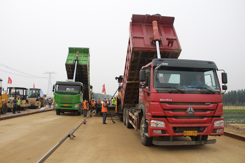 本次底基層試驗(yàn)段的攤鋪過程中,業(yè)主、監(jiān)理單位有關(guān)負(fù)責(zé)人親赴現(xiàn)場(chǎng),進(jìn)行觀摩指導(dǎo),下午,隨著最后一輛水穩(wěn)料車駛離現(xiàn)場(chǎng),該試驗(yàn)段攤鋪工作順利結(jié)束。