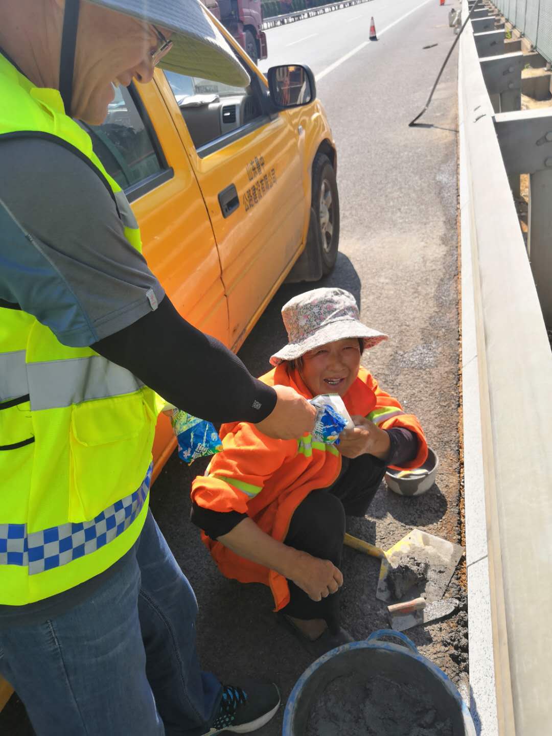 六月,烈日炎炎,走在路上都會(huì)大汗淋淋,更不用說工作在一線的施工人員,陽光照在瀝青路面上,路上的空氣都會(huì)熱到扭曲,即使這樣,依舊有一群可愛的施工人員頭頂烈陽的堅(jiān)持在自己的施工崗位上,他們就是高速養(yǎng)護(hù)上的工作人員。
