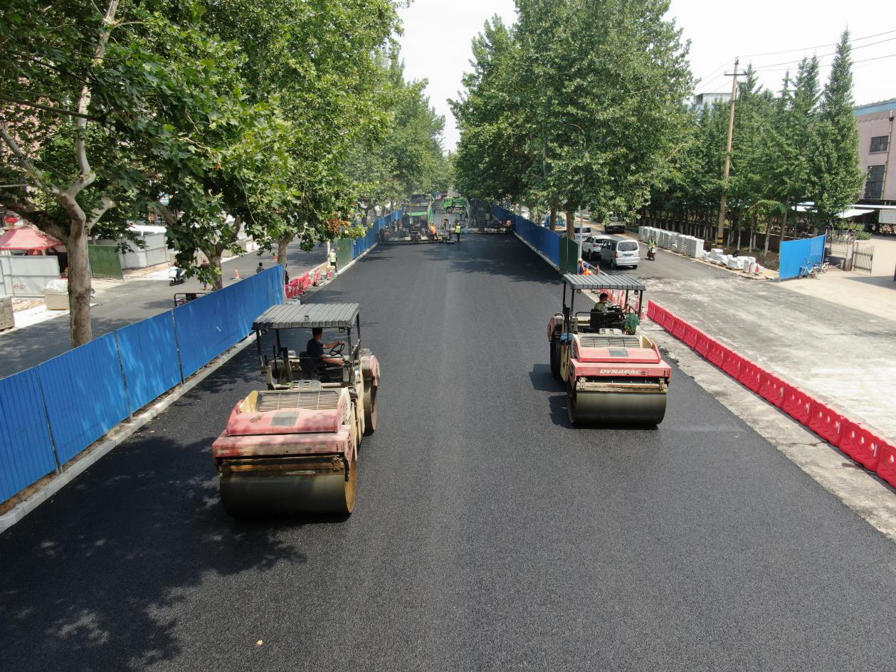 2019年6月23日,共青團(tuán)路開工的第三個月,主路瀝青上面層順利完成攤鋪。日升月落三個月,不僅共青團(tuán)路的梧桐枝繁葉茂,共青團(tuán)路也已經(jīng)改頭換面。