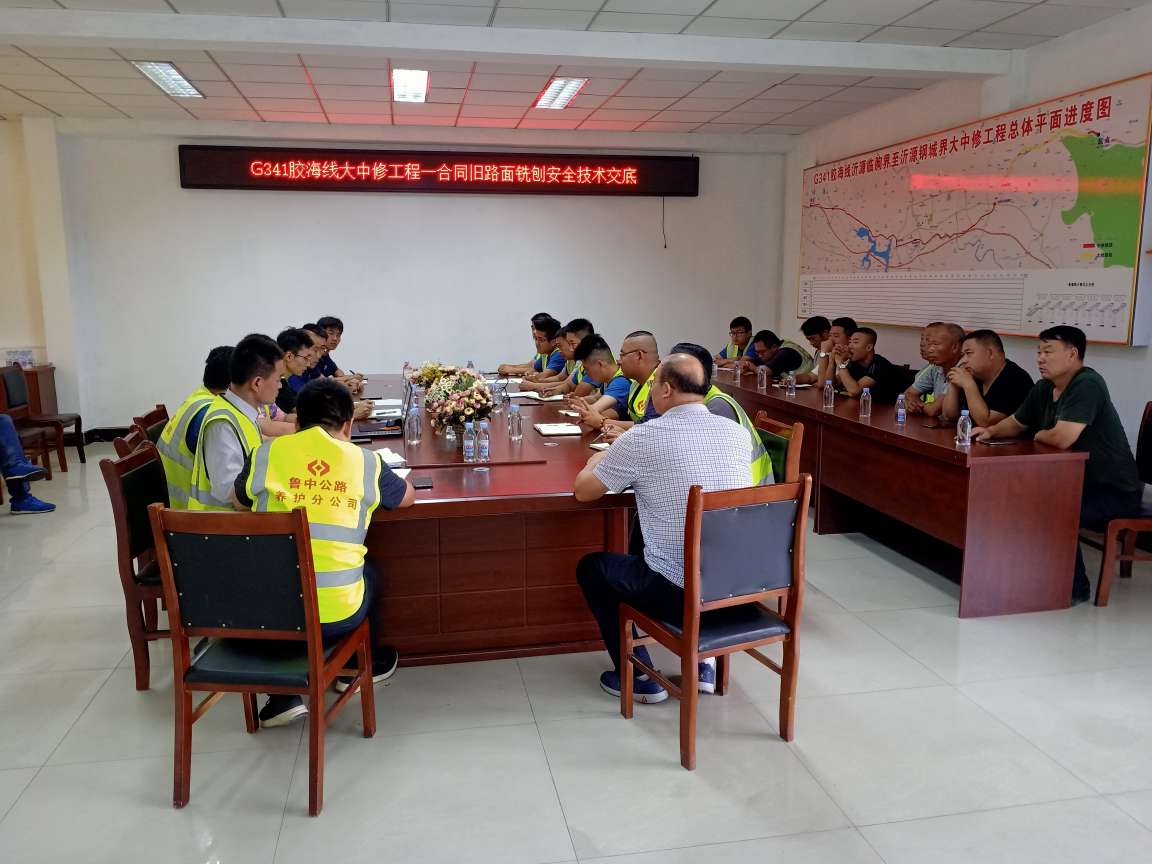 2019年6月29日上午,G341膠海線沂源臨朐界至沂源鋼城界段大中修工程開工之際,G341膠海線沂源臨朐界至沂源鋼城界段大中修工程一合同項目召開由總監(jiān)辦相關(guān)負責(zé)人、勞務(wù)隊伍負責(zé)人、項目部全體人員參加的路面銑刨安全、技術(shù)交底會議。