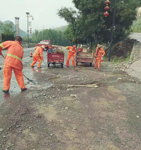 項目組織養(yǎng)護員及時對積水、淤泥、塌方石塊和堵塞物徹底清理;并搶抓晴好天氣,及時處理因雨水所造成的路面病害,全力保障干線公路安全暢通。