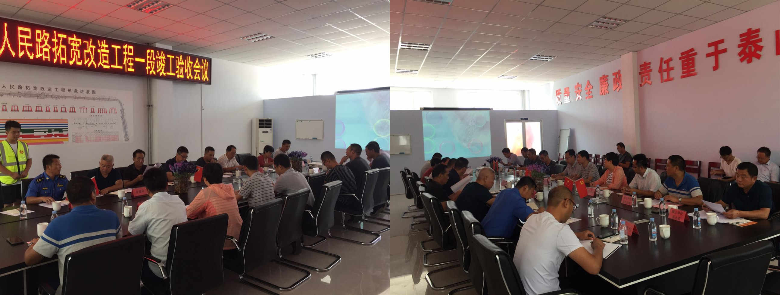 2019年8月23日在建設(shè)單位組織下由市公用事業(yè)中心、縣住建局、縣財(cái)政、交警、縣城建服務(wù)中心、縣執(zhí)法局、勘察設(shè)計(jì)、監(jiān)理等單位參加了沂源縣人民路拓寬改造工程的竣工驗(yàn)收。本次竣工驗(yàn)收我部對(duì)人民路拓寬改造工程做了詳細(xì)的施工總結(jié)并作了匯報(bào),現(xiàn)場(chǎng)實(shí)測(cè)并做了質(zhì)量檢查記錄。驗(yàn)收專(zhuān)家組對(duì)人民路建設(shè)做出了評(píng)價(jià)并一致同意通過(guò)竣工驗(yàn)收。