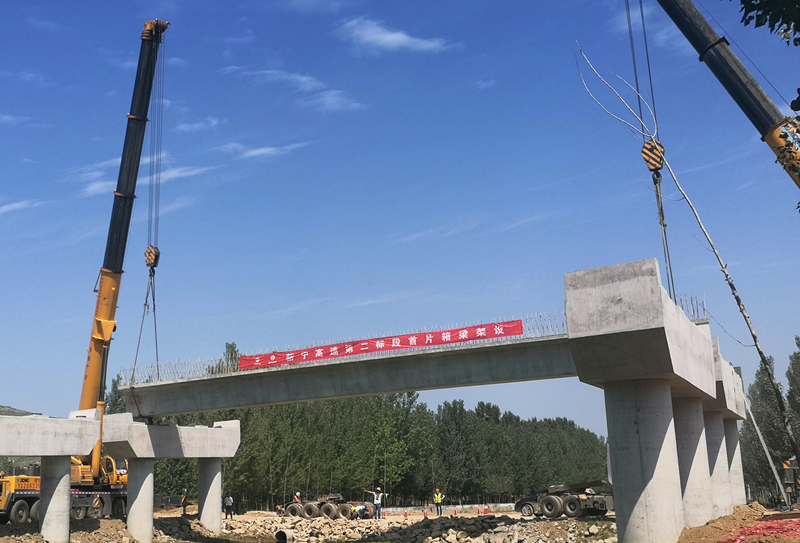 新寧二標首片箱梁成功架設(shè)就位