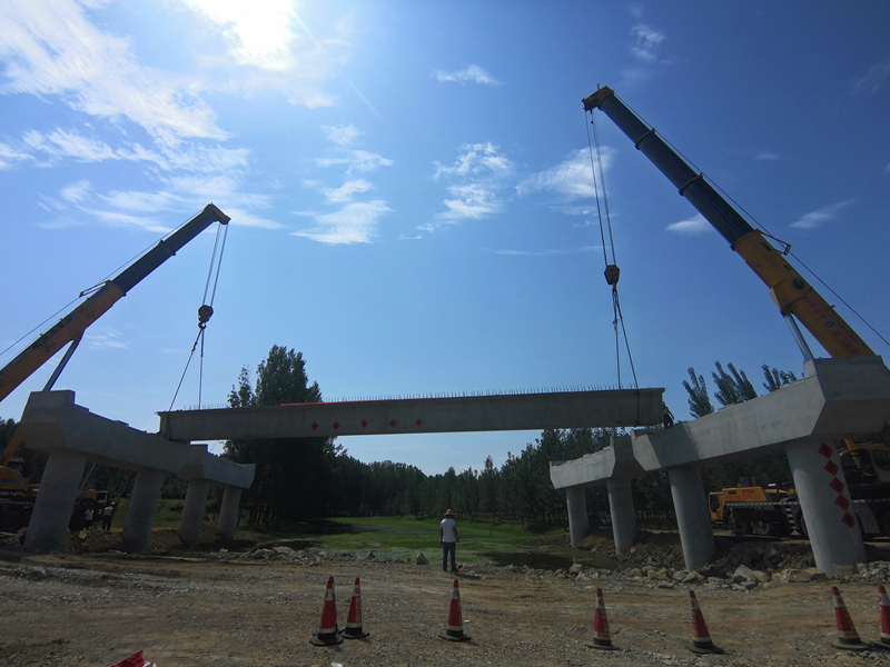 2019年9月1日,在新寧項目秋季百日大干第一天,新寧二標首片30米箱梁于K45+224北鄙河大橋正式開始吊裝就位。在現(xiàn)場技術(shù)人員、箱梁吊裝人員等密切配合下,于8時49分成功架設(shè)就位。