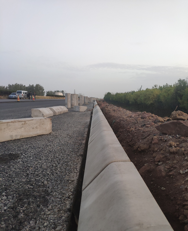 我部共有路緣石安裝65km、急流槽1128道、邊溝及排水溝3.7km及防護(hù)工程漿砌片石5700余方,目前正在施工右幅路緣石安裝、急流槽澆筑、拱形骨架砌筑、邊溝施工,在主體工程施工的同時,附屬工程也按照工序交錯施工,多個工作面同步展開,緊張繁忙的工作氣息撲面而來。