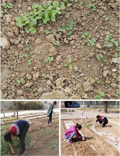 到了監(jiān)理處,看到院子里確實(shí)不少草也挺高了,還拿著大剪刀剪了剪拔高的草,不錯(cuò),還挺好用的。沒(méi)一會(huì)監(jiān)理處的人來(lái)了,領(lǐng)著我們?nèi)ズ笤?,后院是一片菜園子,原來(lái)是拔菜地里的草,大剪子是用不到了。人家告訴我們?cè)趺窗尾?。我蹲下看著綠油油的菜或者草,傻傻分不清楚,人家說(shuō)這是黃瓜秧苗,那個(gè)就是草,可我看著咋都覺(jué)著一個(gè)樣。突然想起老公之前說(shuō),你們城市奧特曼是體會(huì)不到我們農(nóng)村葫蘆娃在麥地長(zhǎng)大的樂(lè)趣的,一個(gè)囧字涌上心頭,終于分清了黃瓜秧苗和草的區(qū)別。好在我們司機(jī)之前去拔過(guò)野菜,車上有兩把鏟子,拔草的活頓時(shí)輕松了不少,當(dāng)然再輕松也抵不過(guò)工作量的大。