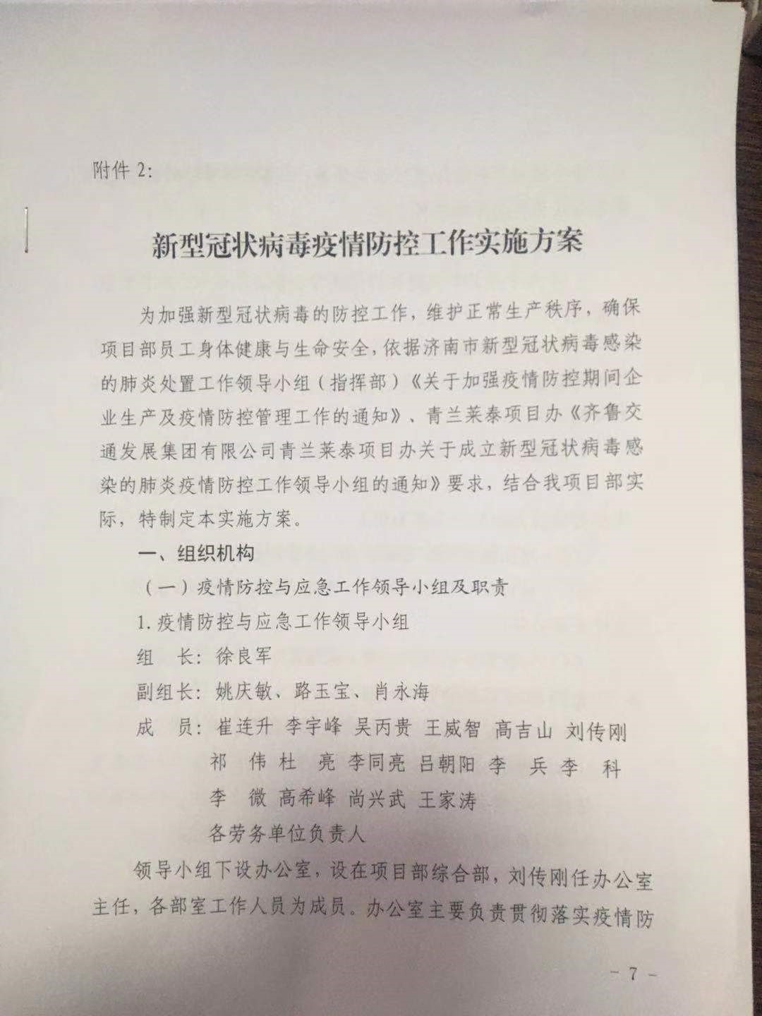 面對(duì)席卷全國(guó)的新型冠狀病毒的蔓延,青蘭項(xiàng)目全體職工不消極、不懈怠。制定方案,籌措物資,加強(qiáng)宣傳。積極貫徹落實(shí)濟(jì)南市《關(guān)于加強(qiáng)疫情防控期間企業(yè)生產(chǎn)及疫情防控管理工作的通知》、青蘭萊泰項(xiàng)目辦《關(guān)于成立新型冠狀病毒感染的肺炎疫情防控工作領(lǐng)導(dǎo)小組的通知》要求,全力以赴打好2020年復(fù)工前的攻堅(jiān)戰(zhàn)。