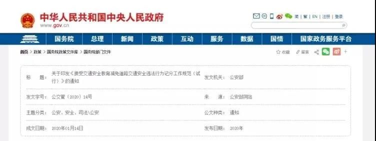 日前,公安部印發(fā)《接受交通安全教育減免道路交通安全違法行為記分工作規(guī)范(試行)》通知。