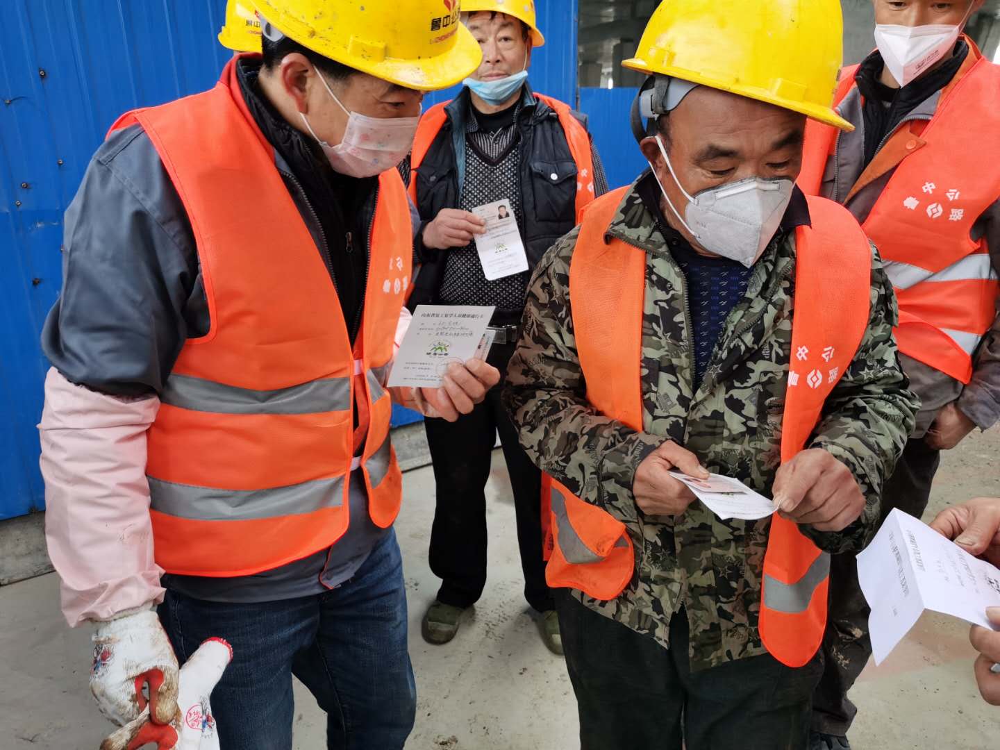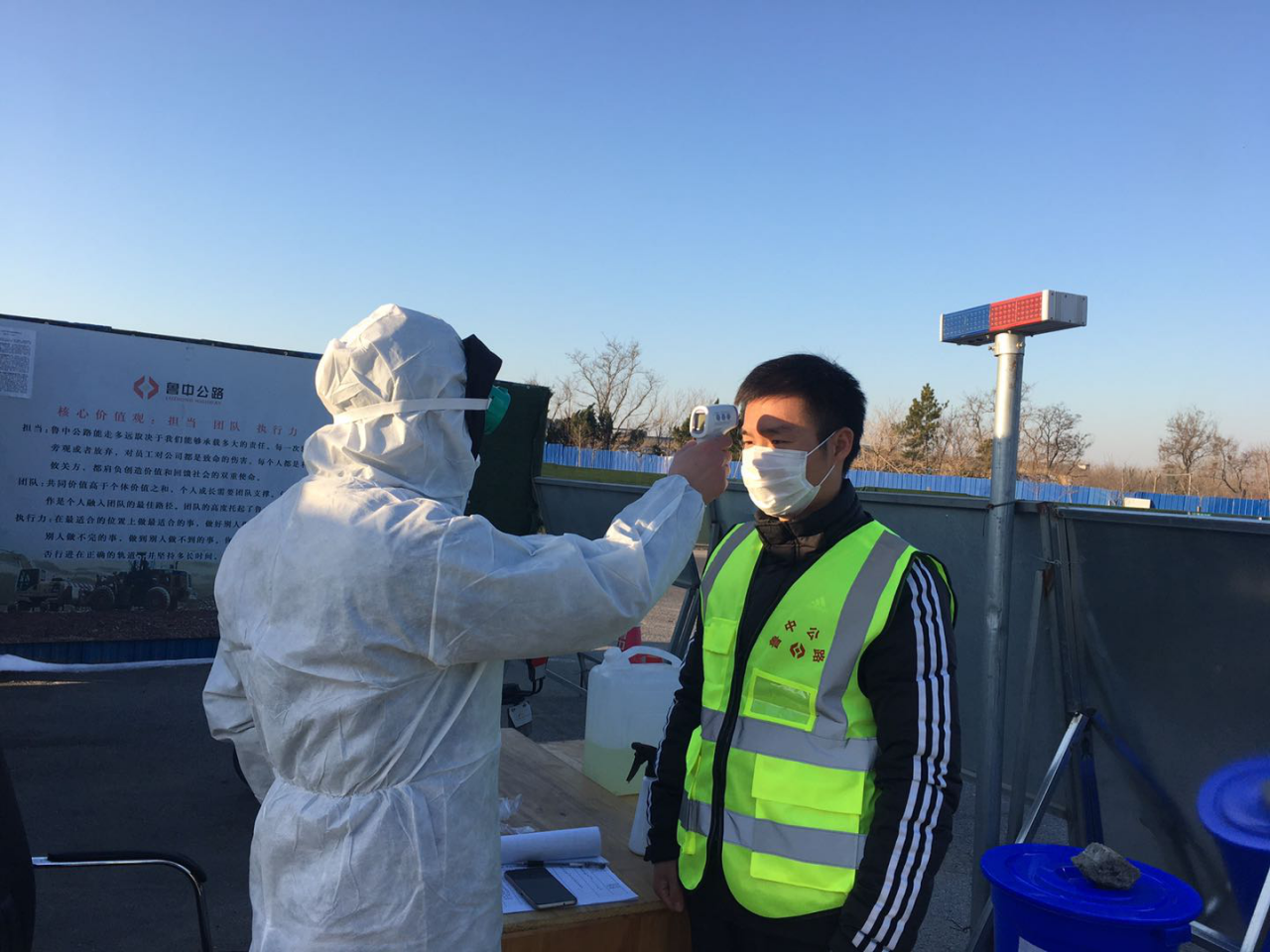 人員進(jìn)場按要求檢查健康證、測體溫、檢查生活區(qū)消毒情