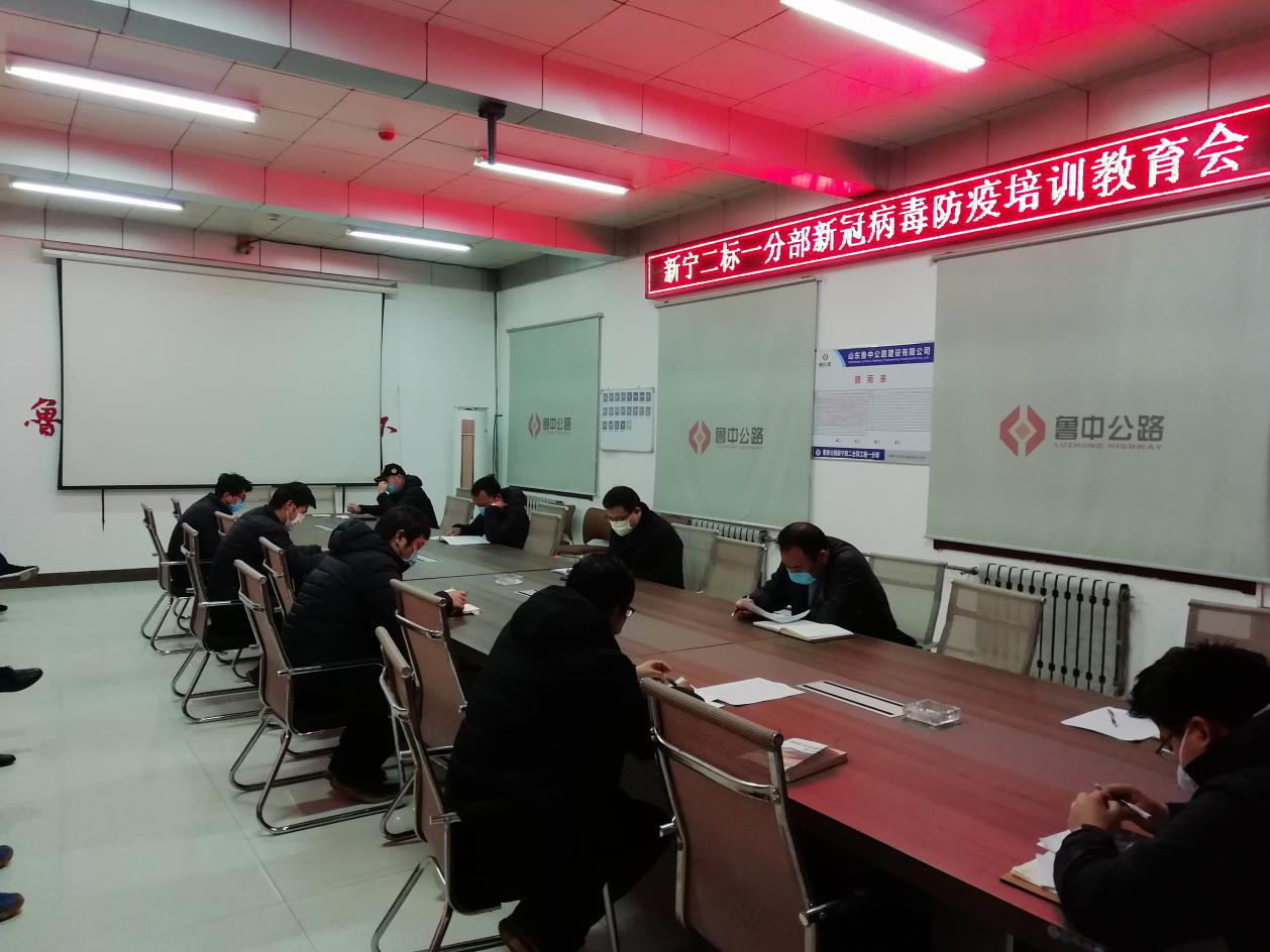 2020年2月29日上午8點,新寧高速項目部一分部組織召開了新冠肺炎疫情防控培訓教育會,分部主要負責人以及各部門到崗人員參加,全體參會人員佩戴口罩并保持安全距離。