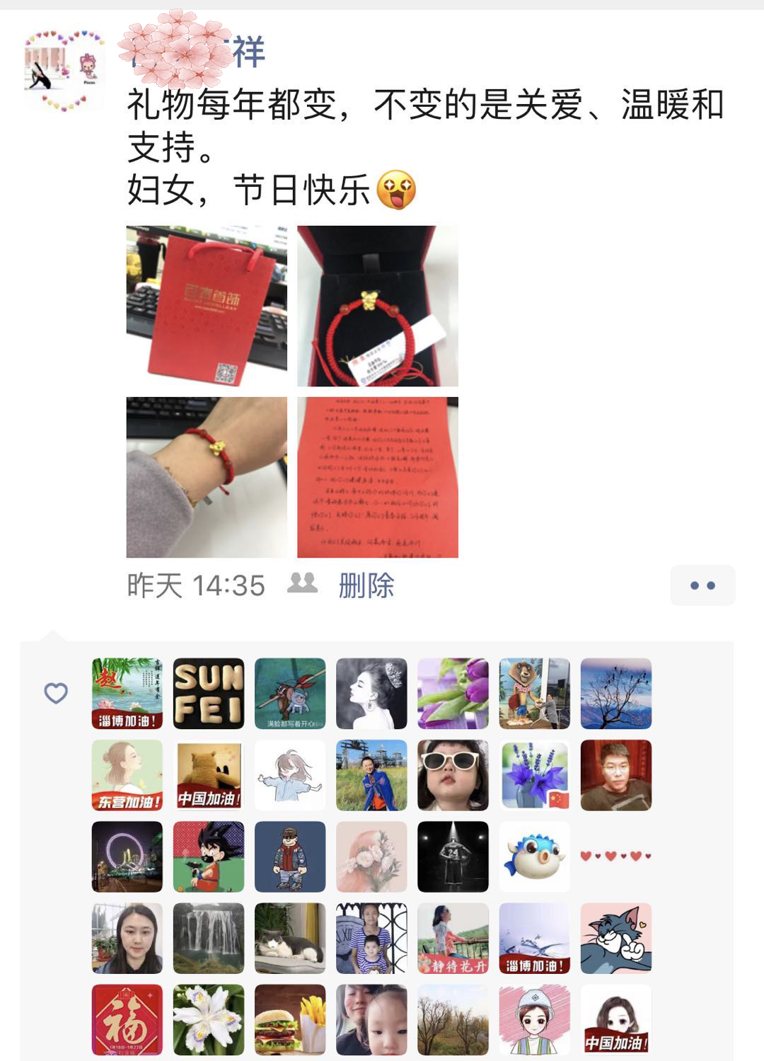 今年公司為女員工們準(zhǔn)備的節(jié)日禮物是一串寓意著吉祥平安的足金鼠轉(zhuǎn)運(yùn)珠手鏈,在這個特殊日子中,寄托了公司對每位女員工的祝福:“數(shù)(鼠)這些美麗的姑娘們最健康!最幸福!”