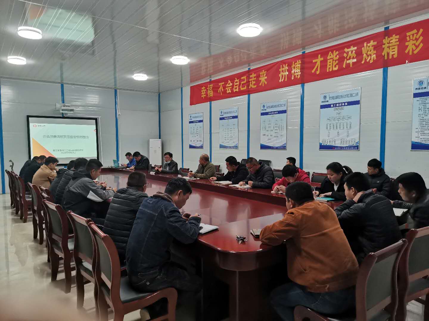 3月13日下午,項(xiàng)目負(fù)責(zé)人組織各級(jí)管理人員進(jìn)行了迎檢的最后一次調(diào)度,針對(duì)調(diào)研提出的新要求,下了死命令:全線便道必須確保中巴車速度達(dá)到40邁要求,各類安全防護(hù)、指示標(biāo)牌必須到位,各作業(yè)面必須開足馬力施工生產(chǎn),以最佳的面貌迎接調(diào)研組檢閱。一邊是緊張繁重的施工任務(wù)和必須完成的進(jìn)度目標(biāo),一邊是事關(guān)公司和項(xiàng)目部榮譽(yù)的迎檢準(zhǔn)備,項(xiàng)大家主動(dòng)迎難而上,凝心聚力,積極擔(dān)當(dāng)作為。面對(duì)任務(wù),沒有人問我該怎么干,有問題怎么辦,因?yàn)槊總€(gè)人都知道,唯一能做的就是排除一切困難,在調(diào)研組進(jìn)入現(xiàn)場(chǎng)前,將我們最好的一面呈現(xiàn)出來。也無需追問工作進(jìn)展如何,因?yàn)殡S時(shí)更新的微信群便是現(xiàn)場(chǎng)的實(shí)時(shí)動(dòng)態(tài)播報(bào)。