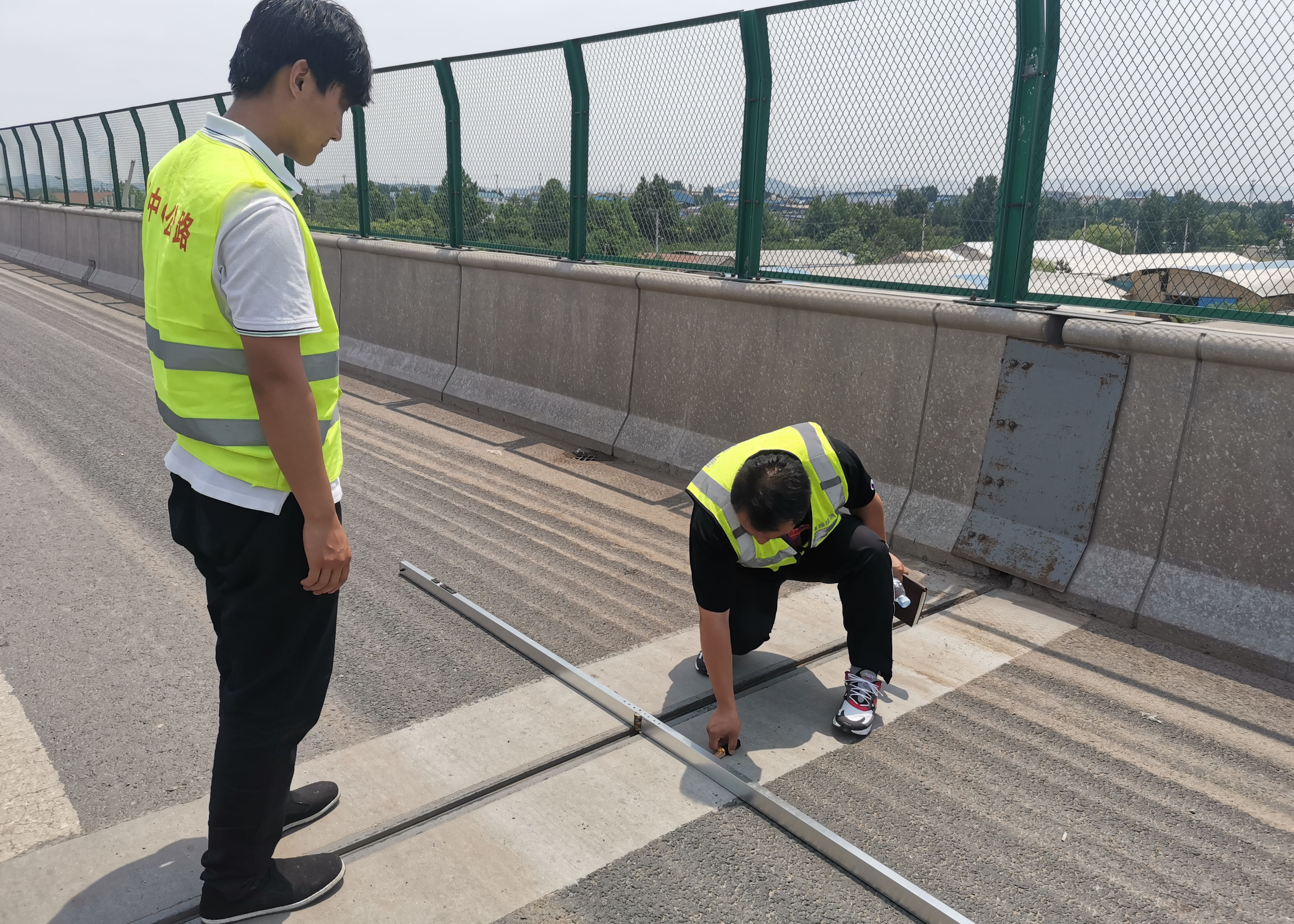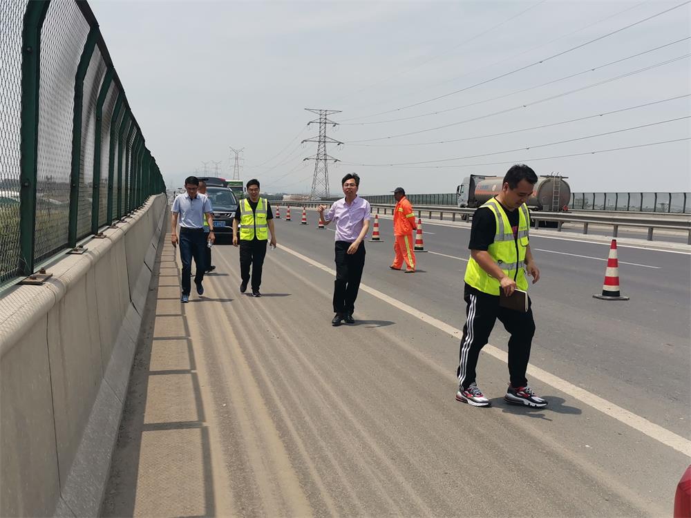 專家組人員分為兩組在上午十一點到達我第二標段進行質量檢驗。路面專家組人員對K93+200-K94+200段進行了外觀質量、路面彎沉、路面車轍、路面平整度、路面抗滑等項目的檢測。橋梁專家組對南羅鐵路分離立交、張博路分離立交的外觀質量、橋梁伸縮縫與橋面鋪裝高差、橋面鋪裝平整度、橡膠支座受力情況進行的檢測。