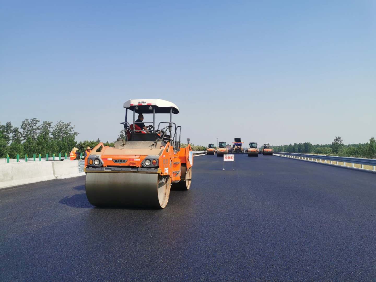 G2項目自進入路面施工以來,面對著施工緊、任務重、交叉施工的嚴峻形勢,項目部在保證安全、質(zhì)量的前提下,合理安排,倒排工期,以加速工程進展為主線,優(yōu)化施工工序和工作方法,增加機械設備和人員,延長作業(yè)時間,項目部部室負責人跟班督導,做好現(xiàn)場的組織指揮、協(xié)調(diào)、指導、控制、保障、服務工作,及時解決施工中存在的困難和問題,保證了瀝青上面層路面施工有序快速順利推進?!?br /> 在路面施工過程中,油層分部瀝青面層施工作業(yè)人員,晝夜奮戰(zhàn)加班加點,一日三餐吃在工地現(xiàn)場,每天早出晚歸,踩在滾燙的瀝青上,不畏瀝青煙氣味熏和瀝青混合料高溫,身體勞累依然連續(xù)作戰(zhàn),為的就是將這份第一的榮耀永遠緊攥在魯中公路的手中,最終在全體職工的共同努力下,保質(zhì)保量的率先完成了左幅瀝青上面層攤鋪工作任務。
